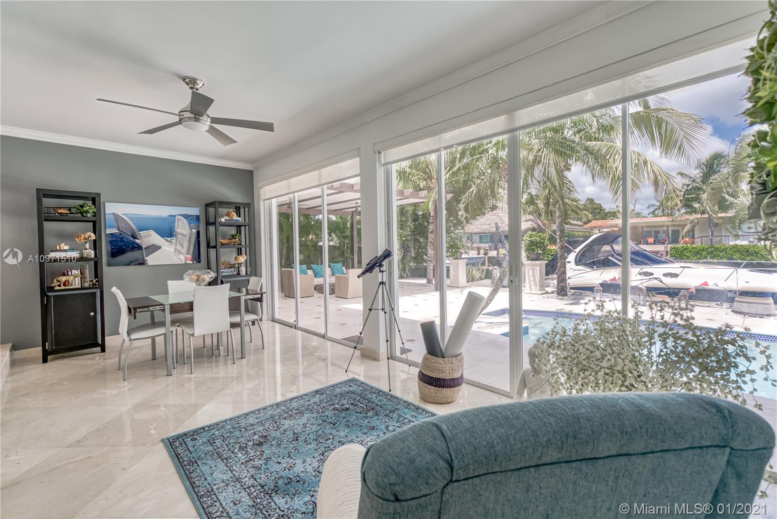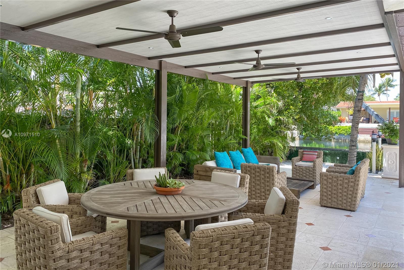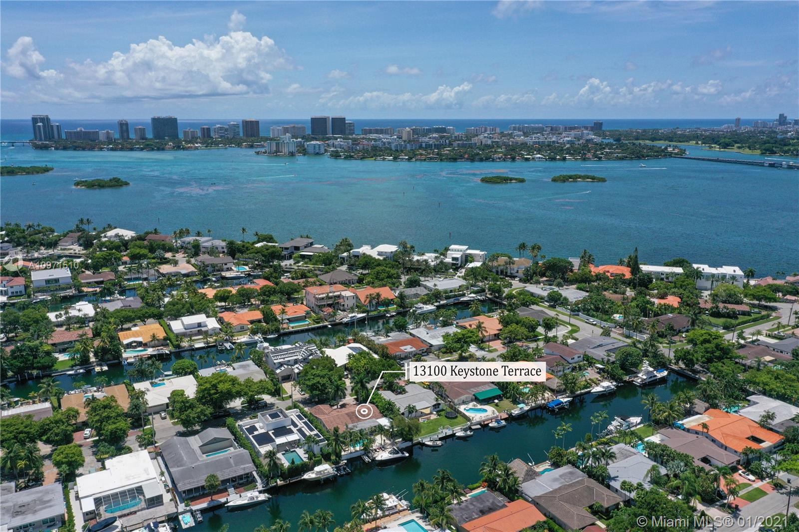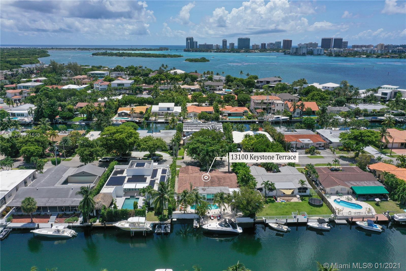 Keystone Island, Miami features 5 bedrooms,4 ½ baths. 78ft on deep water ocean access canal. Only 3 mins to Bay–No bridges. Bright, airy open kitchen concept with Bosch Appliances. Primary bedroom w/large walk-in closet & huge bathroom, relax in soaking tub overlooking pool & water or wash the stress away in separate shower with rain-head & body sprays. Outdoor covered patio (32’X16’) & shaded palm trees are the perfect combination for entertaining pool side. 2 New AC units. For boaters: 78 ft w/davits & dock power to accommodate most boats, room for jet skis, kayaks & paddle boards. Quiet Cul-de-sac street. 24hr Guard Gate.