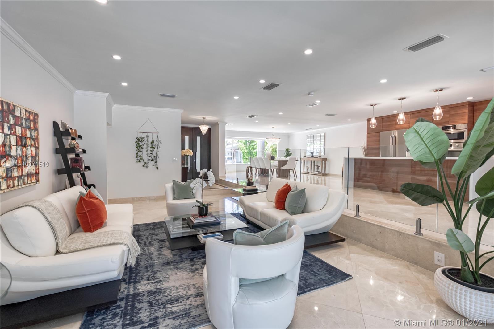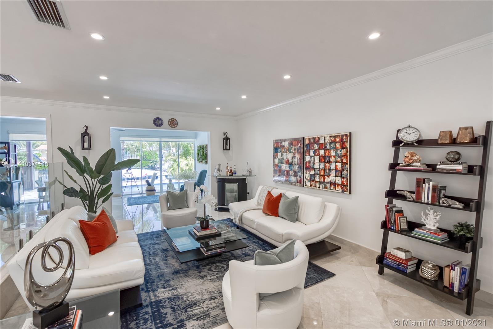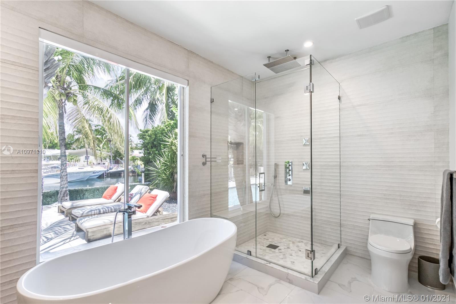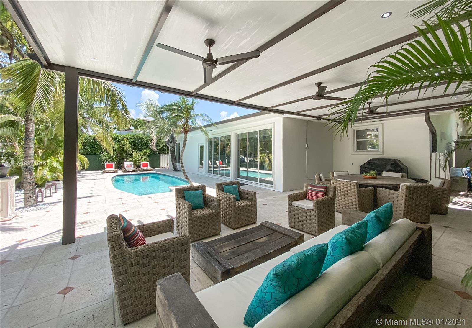 Keystone Island, Miami features 5 bedrooms,4 ½ baths. 78ft on deep water ocean access canal. Only 3 mins to Bay–No bridges. Bright, airy open kitchen concept with Bosch Appliances. Primary bedroom w/large walk-in closet & huge bathroom, relax in soaking tub overlooking pool & water or wash the stress away in separate shower with rain-head & body sprays. Outdoor covered patio (32’X16’) & shaded palm trees are the perfect combination for entertaining pool side. 2 New AC units. For boaters: 78 ft w/davits & dock power to accommodate most boats, room for jet skis, kayaks & paddle boards. Quiet Cul-de-sac street. 24hr Guard Gate.