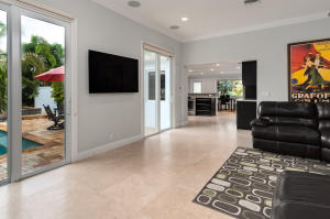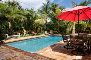 Key West perfection. This Key West style home offers 3 bedroom/4 baths plus a library/office with custom built-ins. It has been renovated to perfection complete, with hurricane impact windows and doors, new roof, new kitchen with custom cabinetry, granite counter tops, stainless steel appliances and wine cooler. Each bathroom has been renovated and appointed with designer sinks and exquisite tile work. The master suite has tiger wood bamboo floors, lime stone master bath and over sized shower. Additional features include: Surround sound, cypress gates, large balcony overlooking the heated salt water pool, lush landscape and custom landscape lighting.