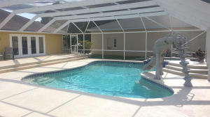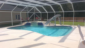 Captivating 4 Bedroom Pool Home with Bonus 1350 Square Foot Workshop/Garage!Spacious Open Floorplan w/high ceilings, decorative planter shelves & crown molding accents.Light & Bright with gorgeous Pool Views. Full cement Driveway with extra parking. Custom-crafted fence surrounds this gorgeous property - so much room to roam, with no pond!2450 Square Ft Screened Patio w/inground pool, Summer Kitchen,& Cabana Bathroom - perfect for entertaining Poolside!Pool features a Fun Slide and Tropical Waterfall Spa! Spacious Open Floor Plan featuring a FLR, DR, and Family Room.Family Room features built-ins. Master Bedroom has lovely pool views and French Doors out to the back patio.