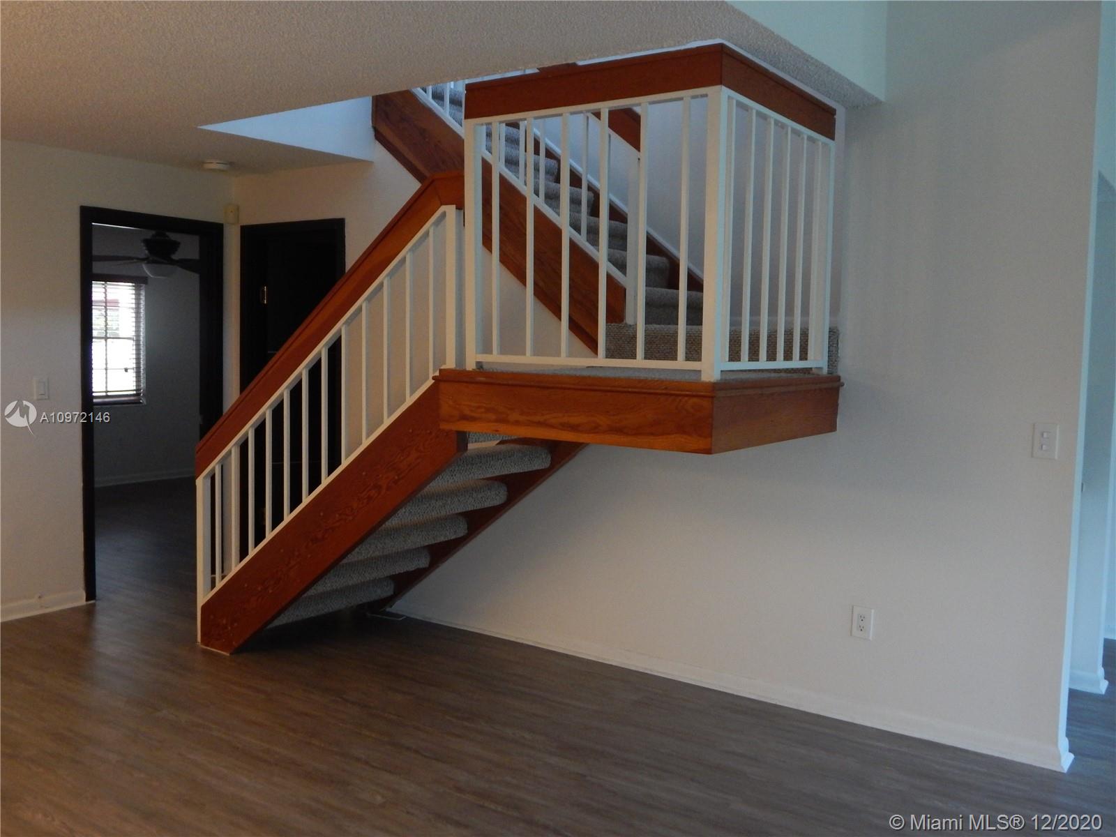SUBSTANTIALLY REMODELED, NEW FLOOR, 1 BATHROOM AND A BEDROOM ON GROUND FLOOR, MASTER ROOM UPSTAIRS, 2 BATHROOMS ARE REMODELED, 1 CAR GARAGE, IMPACT DOORS AND WINDOWS, PATIO OVERLOOKING THE GARDEN, TENANT OCCUPIED. Maintenance fee include: pool, security guard, painting, roof repairs or replacement, common areas.