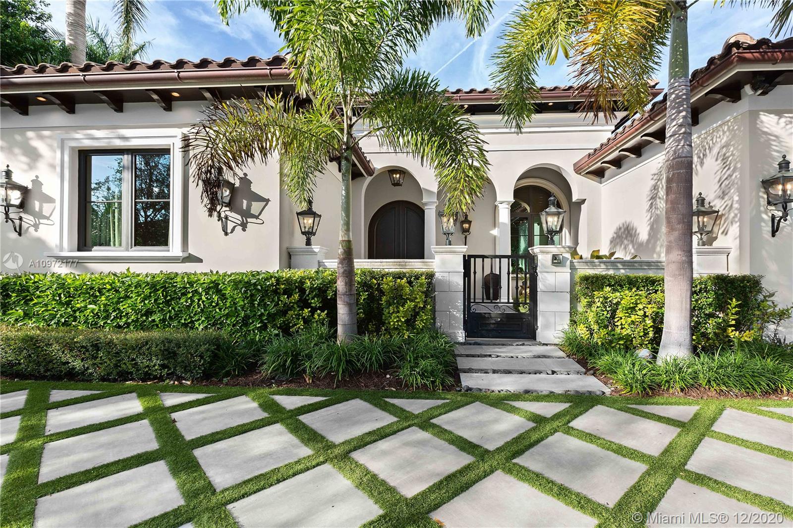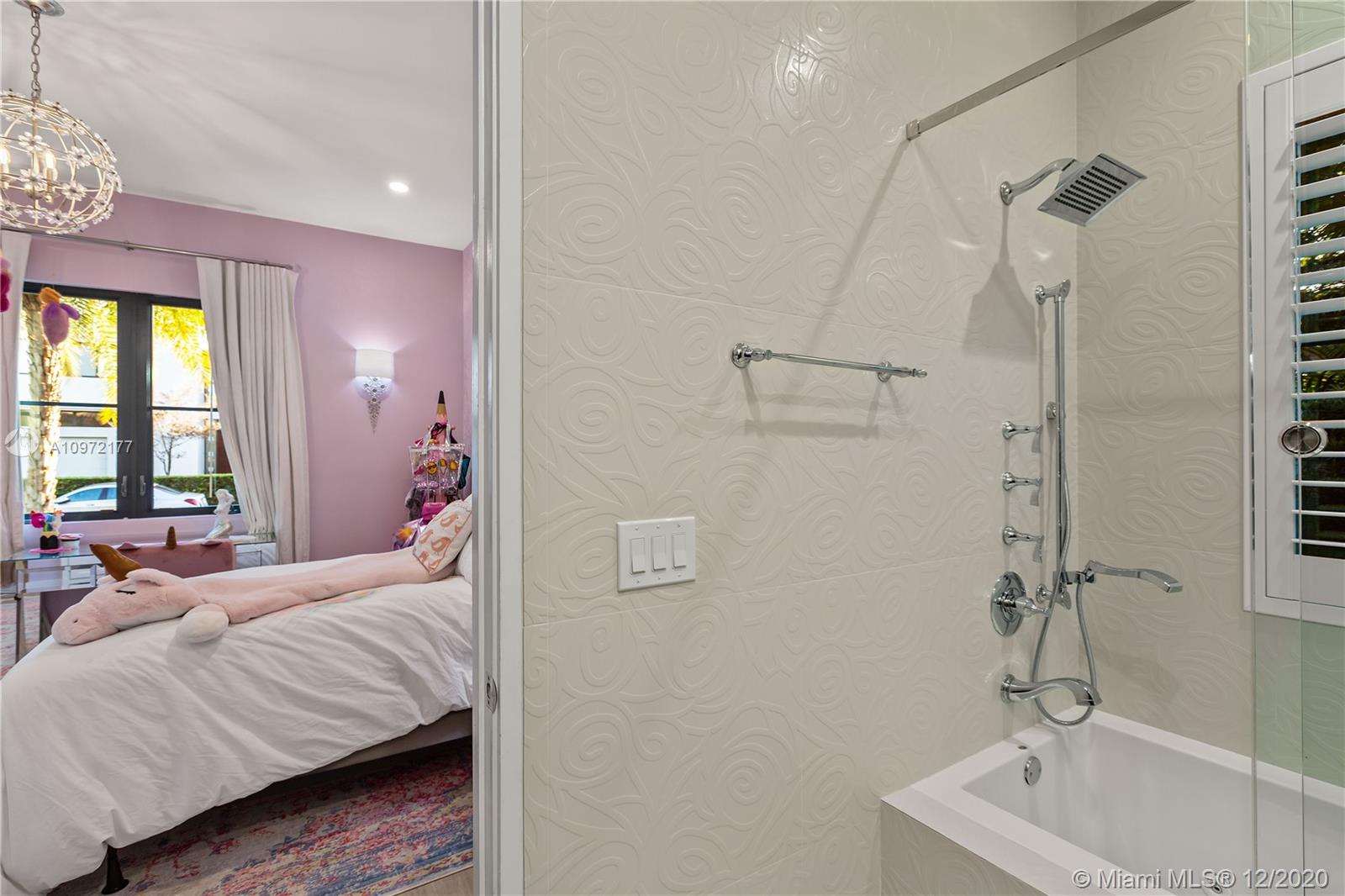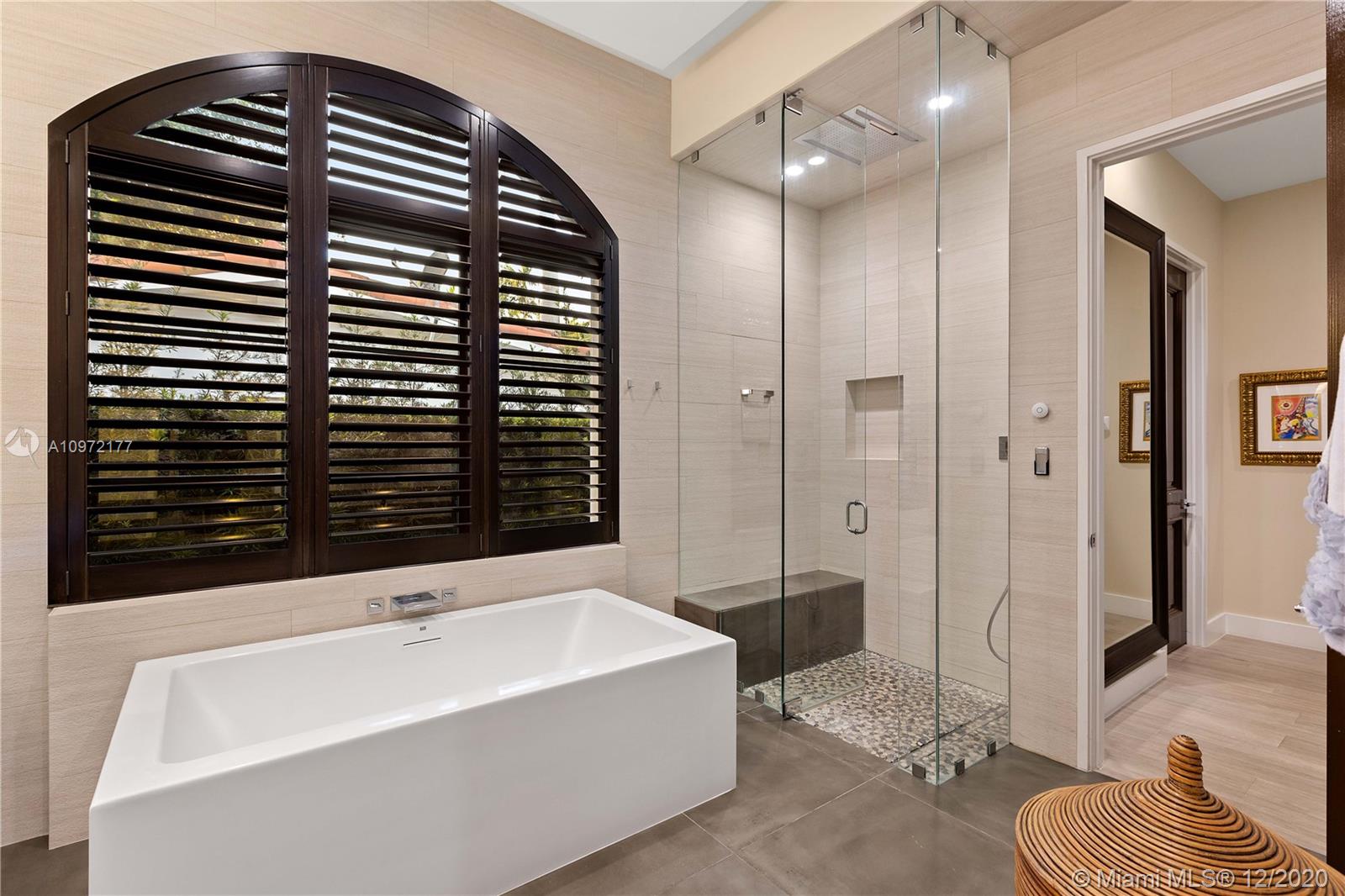 Fabulous custom built home in Bay Harbor... This smart home has everything; 5-bedrooms, 6-baths, each bedroom has en-suite bathroom, bright open floor plan with 14-foot coffered ceilings, gas stove, kosher kitchen, indoor laundry, & security cameras to start. The home has a circular driveway and a gated backyard with a covered patio, BBQ area, pool and hot-tub with smart controls. Impact windows, 2-car garage with epoxy floors. In an amazing neighborhood. This market is hot, don't let someone else beat you to it.
