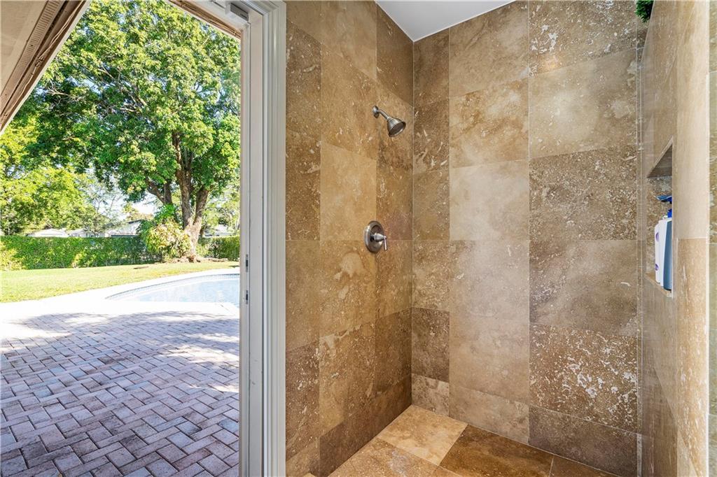 WILL NOT LAST!! Updated 3 bedroom (potentially 4th bedroom) 3 bath, free-form pool home on 1/3 acre, located in the heart of Plantation steps away from Heritage Park, and A schools. This home boasts tumbled marble front entrance, circular drive, 1/3 acre HUGE corner lot, totally fenced, all the doors are IMPACT 2015, shutters for all windows,hurricane garage door 2007. All updated 3 full baths are travertine marble floor to ceiling!!! Upgraded kitchen has alder wood cabinets, granite counters, s/s applncs,double oven, a HUUUGGE pantry, high hat lighting, neutral colors thruout. Flooring is Italian porcelain in common areas. Just freshly painted outside, and brick paver patio cleaned and sealed. Back patio has a tongue/groove ceiling. NEW Washer/dryer-Electrolux