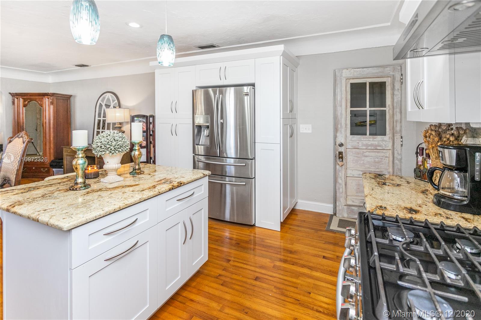 This 1949 remodeled home has open floor plan that includes a newly remodeled kitchen with granite countertops, & backsplash. All new Samsung appliances with double gas oven, state of the art refrigerator and spacious wine refrigerator. The home has the beautiful, original hardwood floors. The master bathroom has been remodeled; includes a new smoked glass, California closets and wood door. The home has hurricane impact windows and well water irrigation system with a new motor. The home also features a large private patio, brand new roof and insulation (2018), one care garage with washer/dryer. Security system includes outside ring and flood cam and inside nest system for savings on your electric bill. This home is move in ready!