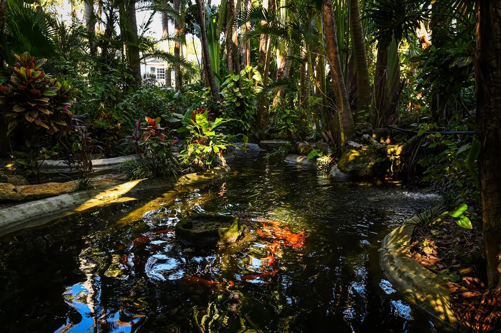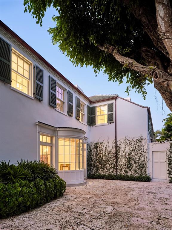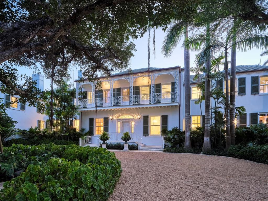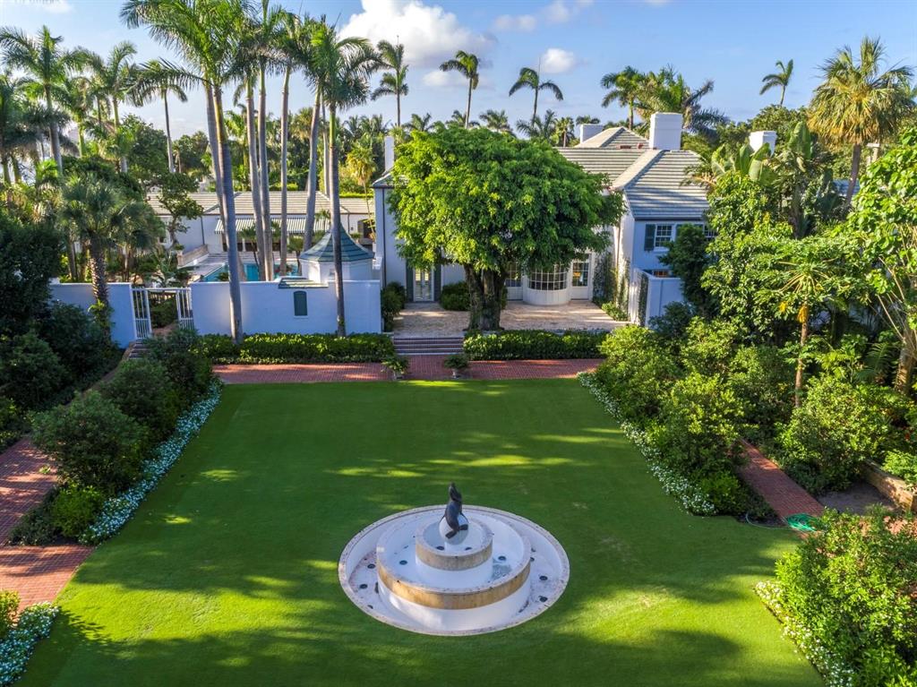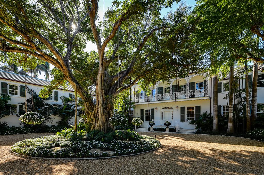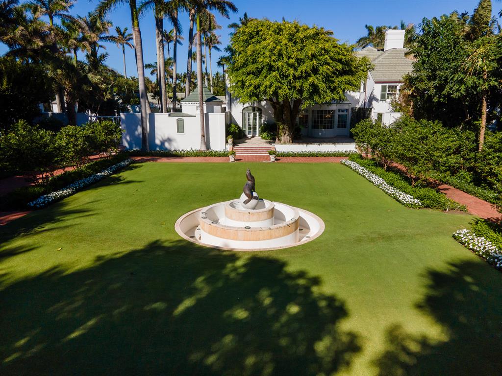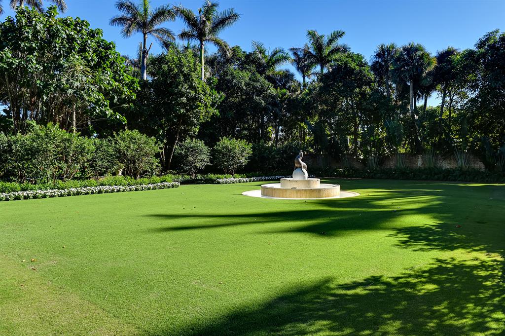 Palm Beach Grandeur- Direct waterfront compound on exceptional, rare 3+ acre estate. Located along the Intracoastal in the Estate Section, this home features stunning sunset views, boat dock, and tennis court with viewers' terrace. Landmarked home designed by Marion Sims Wyeth with 9 bedrooms, 10 full baths, and 6 powder rooms. Fantastic outdoor spaces include stunning landscaping, welcoming motor court, terraces, outdoor kitchen, beautiful koi ponds with garden bridge, and waterfront pool. Highlights include gorgeous European detailing, paneled library, elevator, and 6 car garage. Gym with built-in bar, and spa with changing room, steam shower, custom sauna, and powder room., Theater features drop-down movie screen, integrated speakers, wood paneling, and large bar.