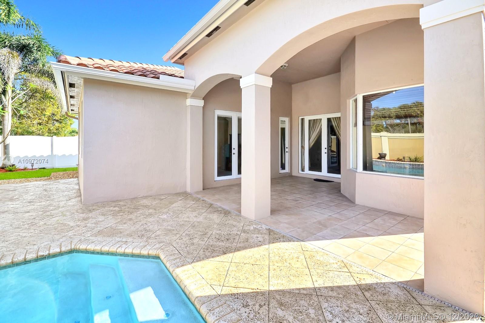 WELL APPOINTED IN THE ROYAL GRIFFIN ESTATES NEIGHBORHOOD OF COVETED COOPER CITY IS THIS GORGEOUS 4 BEDROOM POOL HOME. FROM ARCHED WINDOWS TO THE INTERIOR ARCHWAYS, CROWN MOLDINGS, TRAY CEILING DETAIL, & HIGH CEILINGS;ATTENTION TO DETAIL IS DISPLAYED THROUGHOUT THE ELEGANT HOME. KITCHEN W/ GRANITE COUNTERS & STAINLESS STEEL APPLIANCES, OFFERS A BREAKFAST NOOK OVERLOOKING THE SPARKLING POOL. A THOUGHTFUL SPLIT BEDROOM PLAN ALLOWS FOR PRIVACY.ENJOY THE SOUTH FLORIDA INDOOR/OUTDOOR LIFESTYLE WITH ELEGANT FRENCH DOORS OPENING OUT TO THE GORGEOUS POOL/SPA WITH WATERFALL, COVERED PATIO, & PRIVATE YARD. HUGE PRIMARY SUITE WITH ELEGANT TRAY CEILINGS OPENS TO COVER PATIO AND POOL AREA.SPACIOUS ENSUITE BATH WITH 2 VANITIES, SOAKING TUB & SHOWER. ZONED COOPER CITY SCHOOLS.