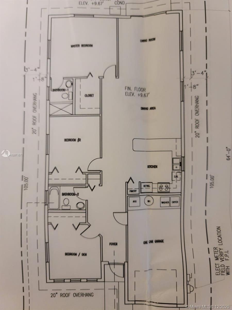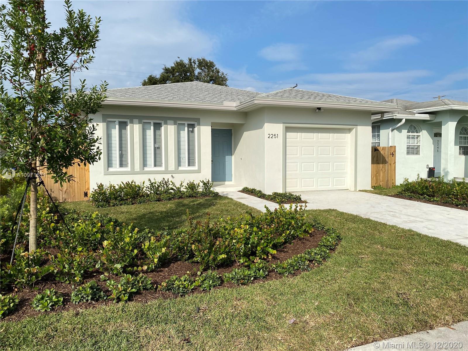 NEW CONSTRUCTION. Builder did a great job with this 3/2 home. Open space design. Impact proof windows and doors, water proof vinyl floor and tile on bathrooms, high efficiency central A/C brand Carrier, stainless still appliances brand Samsung, modern kitchen cabinets with quartz countertop. Attached garage and drive way. Sprinkler system with pump/well. Backyard fenced for privacy and pets. Service road for garbage collection. No Associations. Developer fee of 2%. Super centric location close from I-95 and Oakwood Shopping Center. You can’t lose this fabulous house!