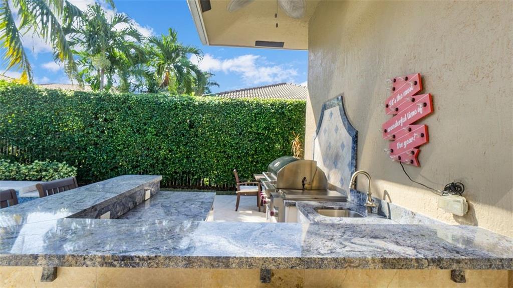 Luxurious and upgraded triple split, this 4 bedroom, 3 bath home in the highly sought after community of Pelican Isle features an open and spacious floor plan along with IMPACT WINDOWS! The beautiful kitchen is the "Heart of the Home" complete with a large customized granite island and stainless steel appliances. MARBLE FLOORS throughout all living areas and beautiful LAMINATE FLOORS in the bedrooms. Owner's Suite features separate tub and a separate shower. Enjoy entertaining in your own private tropical oasis: TOP OF THE LINE WOLF SUMMER KITCHEN WITH GRANITE BAR! SALTWATER POOL SYSTEM WITH SOLAR HEATING! This home is ideal for the entertainer! Don't miss this stunning home!