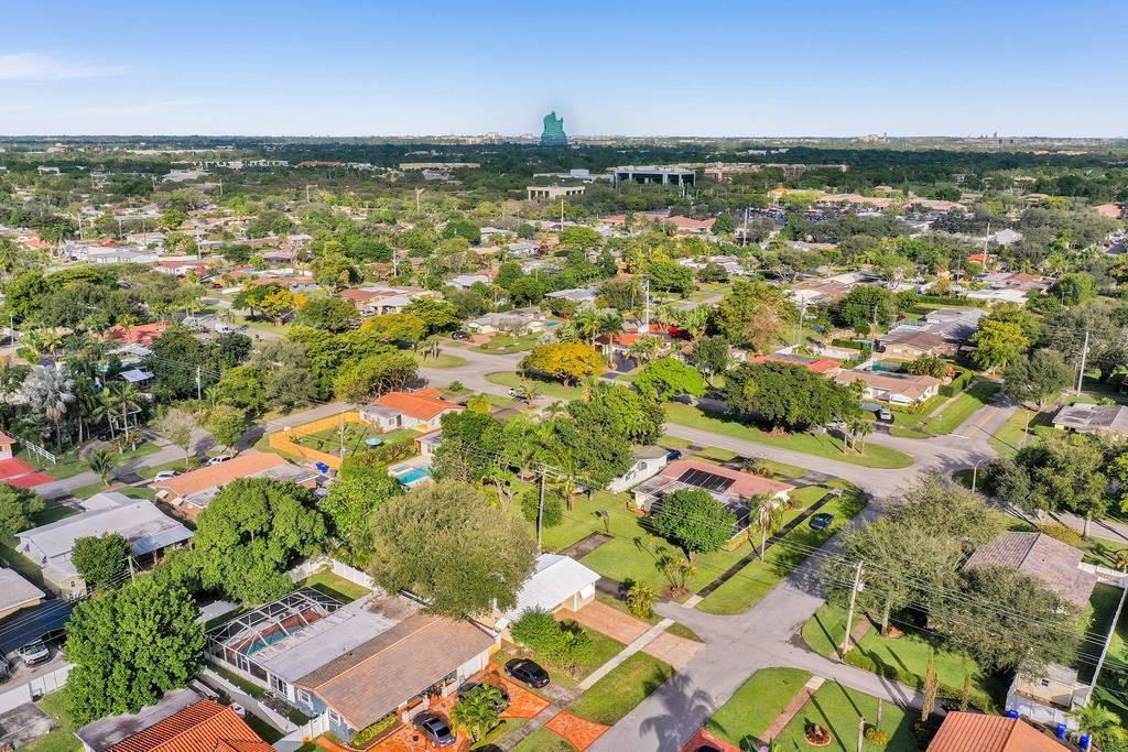 Hollywood Hills move-in ready 3 bedroom 2 bathroom home with a sparkling pool & huge fenced yard/patio on a corner lot. The main bathroom was fully remodeled with spa-like tile, rainfall shower head and granite top wood vanity with an under-mount sink. The kitchen has newer Samsung stainless appliances and has tons of cabinets & countertops for easy meal prep/storage. Huge family room with view of the pool/patio. Interior was freshly painted in tranquil colors. Luxury laminate floor recently installed in the main living areas. Enjoy access to excellent schools, Memorial Hospital, shopping and I-95 & the turnpike. Realtors please read the broker remarks in full. The main roof 1993, flat roof replaced 2014, AC replaced 2012 & water heater 2005. Priced to sell quickly in a great neighborhood!