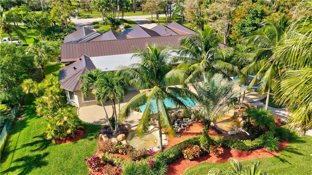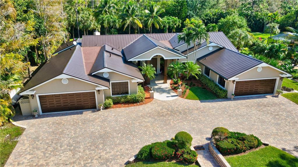 WOW! ONE OF A KIND CUSTOM ESTATE. SPRAWLING ONE STORY SET ON A SPECTACULAR MANICURED ACRE+ PROPERTY WITH A FULLY FENCED REAR YARD & EXPANSIVE SWEEPING CIRCULAR DRIVEWAY. STEP IN TO A GRAND FOYER FLANKED BY BEAUTIFUL BOOKSHELVES, SOARING VOLUME CEILINGS, ENORMOUS GREAT ROOM, FABULOUS KITCHEN WITH HUGE CENTER ISLAND, GAS COOKING & WALK IN PANTRY, FRENCH PATTERN MARBLE FLOORS, FIREPLACE, FULL BAR, AND WALLS OF SLIDERS LEADING TO YOUR OUTDOOR PARADISE. COVERED & OPEN PATIOS, RESORT STYLE POOL WITH FOUNTAINS, WATERFALLS AND LIGHTS. 2 SEPARATE GARAGES ARE VERY LARGE & ONE IS CURRENTLY CENT. AIR CONDITIONED AND SET UP AS A GREAT MEDIA ROOM. BRAND NEW METAL ROOF 2020 , WHOLE HOME 45KW GENERATOR, 3 ZONES OF A/C AND SO MUCH MORE. CALL TODAY, COME FALL IN LOVE & MAKE THIS HOUSE, HOME!
