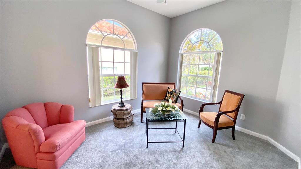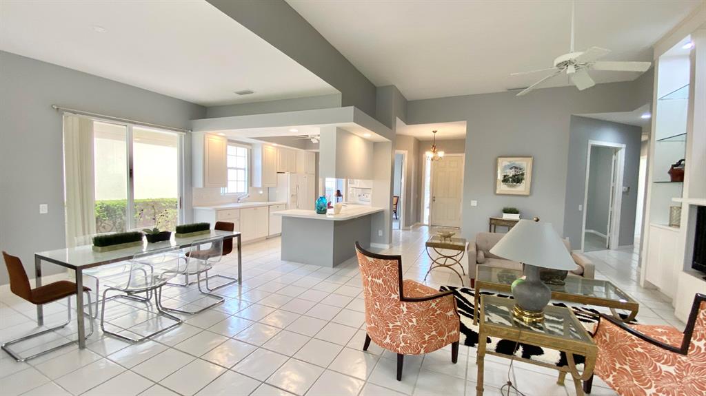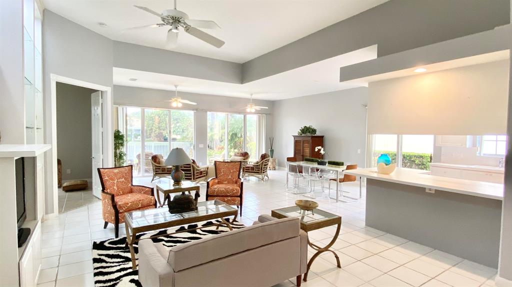 This Expanded Oakmont model has tile through the main living areas and master bedroom, new carpet in the den and guest bedrooms, fresh paint throughout. Stunning 12 ft ceilings in the great room and a built in entertainment center,10 ft ceilings elsewhere. The expanded living space offers many options for furniture placement, with an open patio and views of the lake, fenced in yard, large electric awning, perfect for shaded outdoor dining! This property also boast the popular ''side load garage'' which allows plenty of parking options. the ac has been replaced and updated kitchen appliances. The master suite has generous closet space and a unique double bathroom arrangement, one side has a deep Roman tub, the other has a large walk in shower... both with its own sink, vanity and toilet.