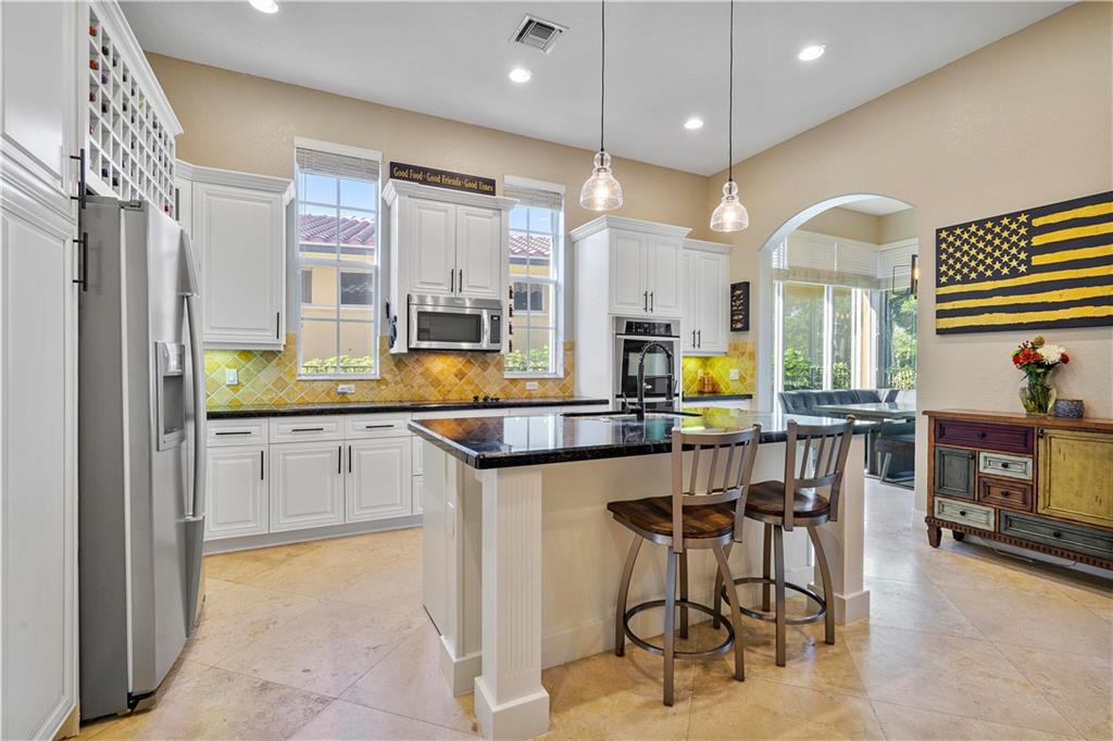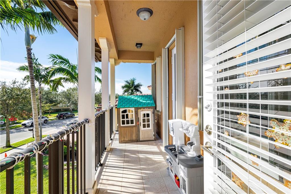 Gorgeous upgraded 5 bedroom home that sits directly on a beautiful preserve with tons of privacy! Master down with access to screened in patio, 2 custom walk-in closets, dual sinks and bathtub. Newly upgraded open kitchen with stainless steel appliances, granite countertops, double oven, and a custom-built wine rack. High ceilings with tons of natural light and marble floors throughout the entire downstairs. Eat-in kitchen nook with large windows overlooking the preserve. Home interior has recently been painted along with 2 newer A/C units, accordion hurricane shutters on every window, 2-car garage, circular driveway. A full bedroom and bathroom downstairs, 3 bedrooms upstairs plus the bonus room (could be a playroom or converted to a 6th bedroom) with access to large front balcony.