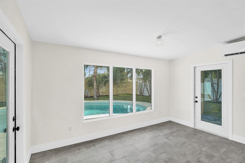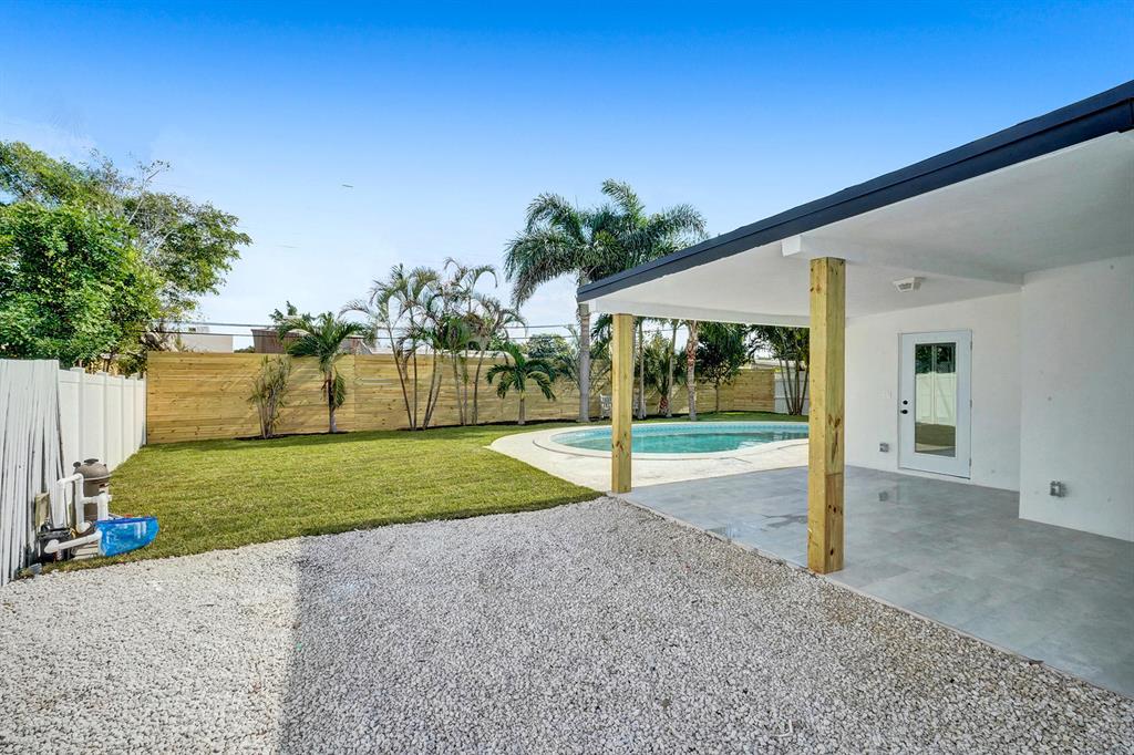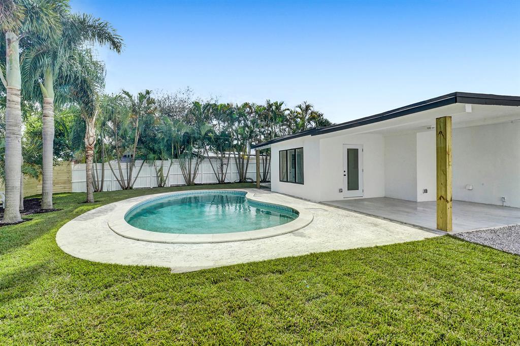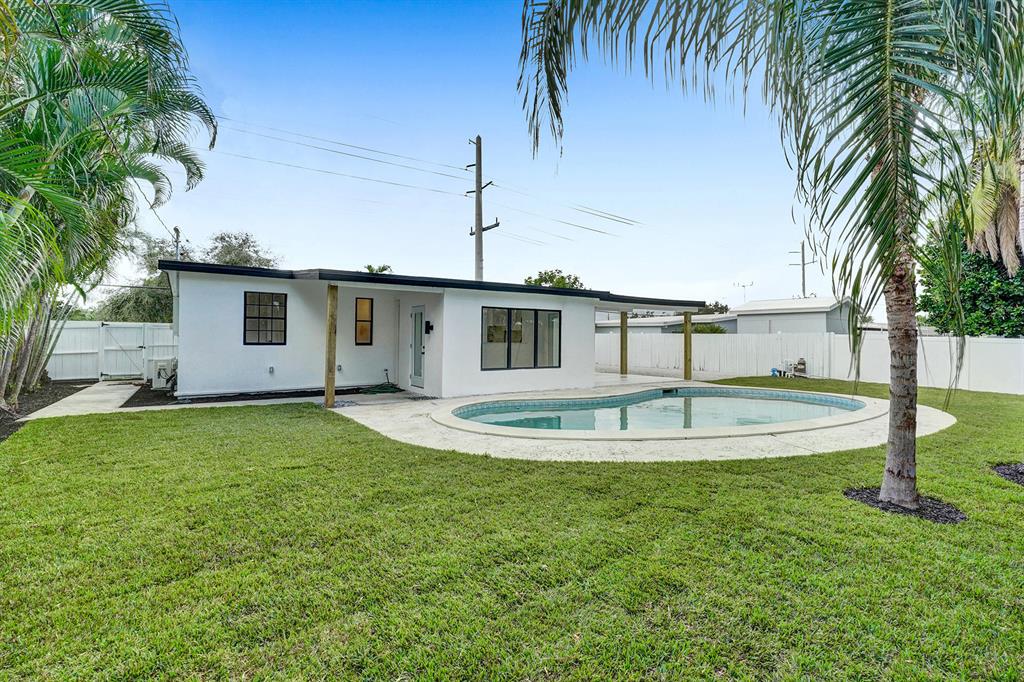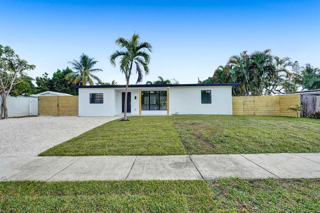 Practically brand new 3 bedroom, 2 bathroom single family home ideally located close to restaurants, shops, beaches and I-95 boasts the following: New tankless water heater, new A/C units, brand new electrical with 1 year warranty, brand new 200 amp breaker box by Leviton, large frame impact windows and French doors, porcelain tile throughout, fully renovated bathrooms, new washer and dryer, new smoke alarms, new kitchen with stainless steel appliances and quartz countertops, beautiful yard with pool completely fenced in for privacy with new grass and landscaping plus much more. All tastefully done leaving no stone unturned in terms of renovation. Welcome to your new home!