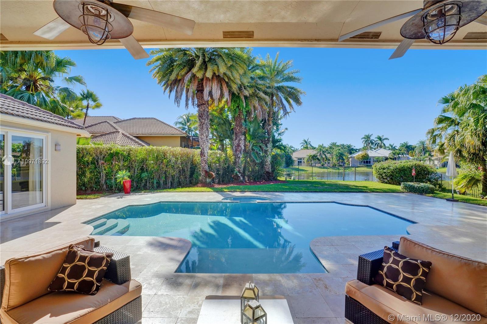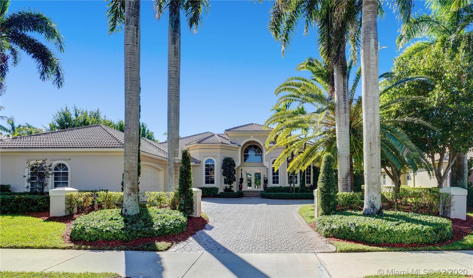 First time on the market! Stunning and turnkey transitional modern custom built home in the Provence neighborhood of Weston Hills Country Club! Private cul-de-sac location, premium 0.41 acre lake front lot, 5,495 sq ft full of details and versatility from floor to ceiling. 5 bedrooms, 4 1/2 bathrooms plus den/office with storage closet and a playroom/billiard room. Numerous features include: Saturnia marble and wood floors, Silhouette window blinds throughout, motorized blackouts in each room, updated kitchen design with large walk-in pantry, additional den/office next to master bedroom, luxurious built-in family room wall unit with plenty of storage, brand new patio and pool, 3 car garage with house wall system, extra parking on driveway and 2 attics. Meticulously maintained!!!