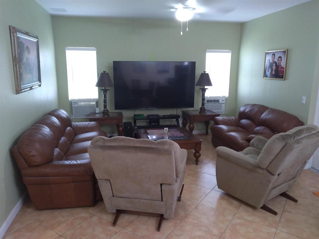 2005 Built Home. 10 foot ceilings, Built with new Construction codes. Hurricane Shutters, Central System is one year young and is a 4 ton, Carrier Brand. OWNER had the electrical work done, SO IS READY FOR A GENERATOR. Tiled floors,, Split Bedroom Plan. Great Room Floor plan. Kitchen Has lots of Counter Space. 42 inch Cabinets, Nice appliances, Living Room/ Dining area have plenty of light. Large Hurricane Double doors access the Inviting Covered Screened patio. The Master bedroom is very private from the other Bedrooms, Walk-in Closet is sure to accommodate large wardrobe % Shoes. The Location of this Home is Unique, due to the fact that is the last home on the right , next to a green area of over 225 feet wide by 120 feet deep. Location, Location. Make this one Your home sweet Home