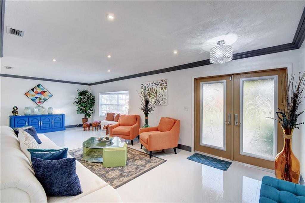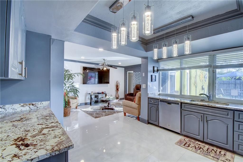Completely updated 4 bedroom corner lot pool home with a two car garage. All impact windows and doors. Granite kitchen and stainless steel appliances. New air conditioner, new hot water heater, gas stove and new flat roof. New baseboards and crown moldings, and recessed lighting. Split floor plan. Huge master bathroom with soaking tub and separate shower. Tropical fenced outdoor area with large pool, perfect for entertaining. Cabana bath also has separate shower and bathtub. Formal dining room and two family rooms. New sprinkler system ran on well water.