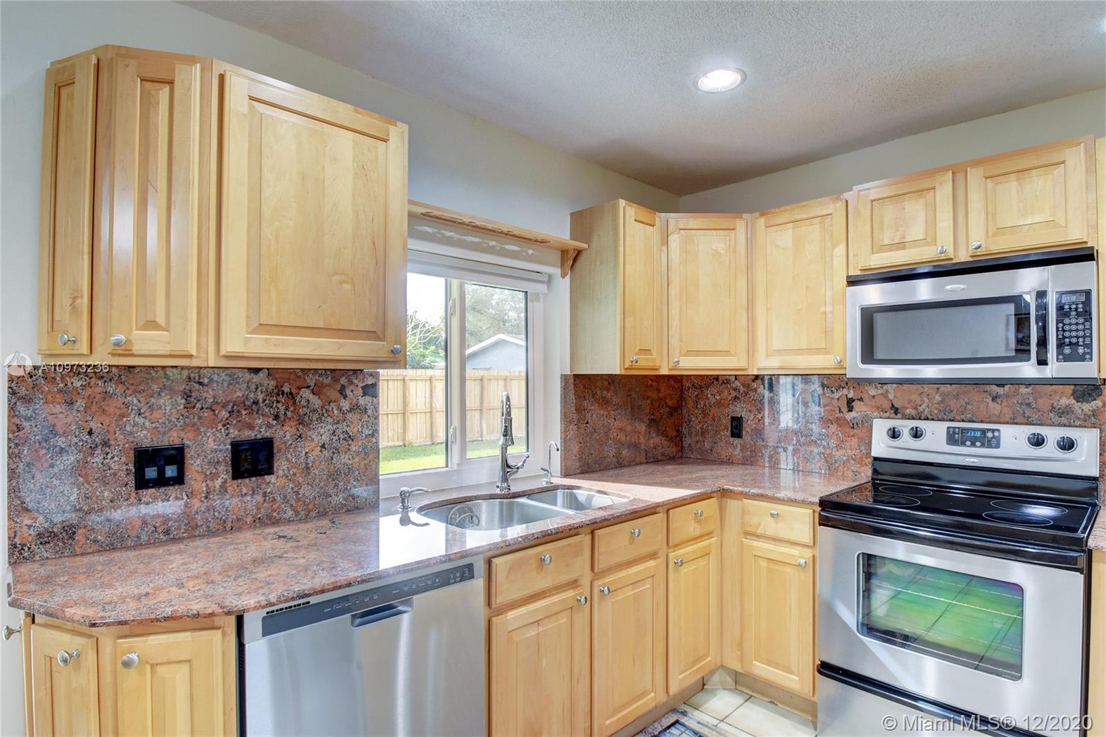 Excellent Pembroke Pines location close to many restaurants, shopping centers and main highways. Beautiful Immaculate Single-Family Home, 3 BEDROOMS plus BONUS ROOM which can be used as an office, media room or 4th BEDROOM. LARGE BACK YARD for the kids and pets to play and enjoy safely all day and also great for entertainment. Hurricane High Impact windows, great kitchen cabinets with granite tops, stainless steel appliances, new garage electric system, water filter system, electric panel replaced 2018.