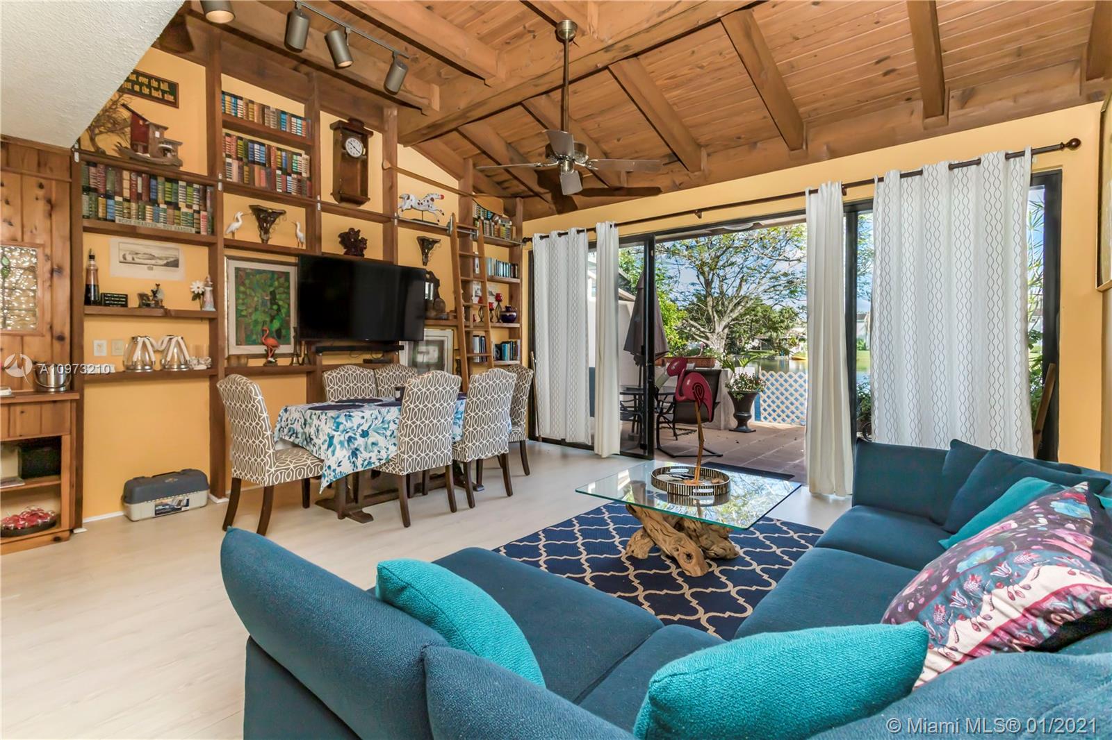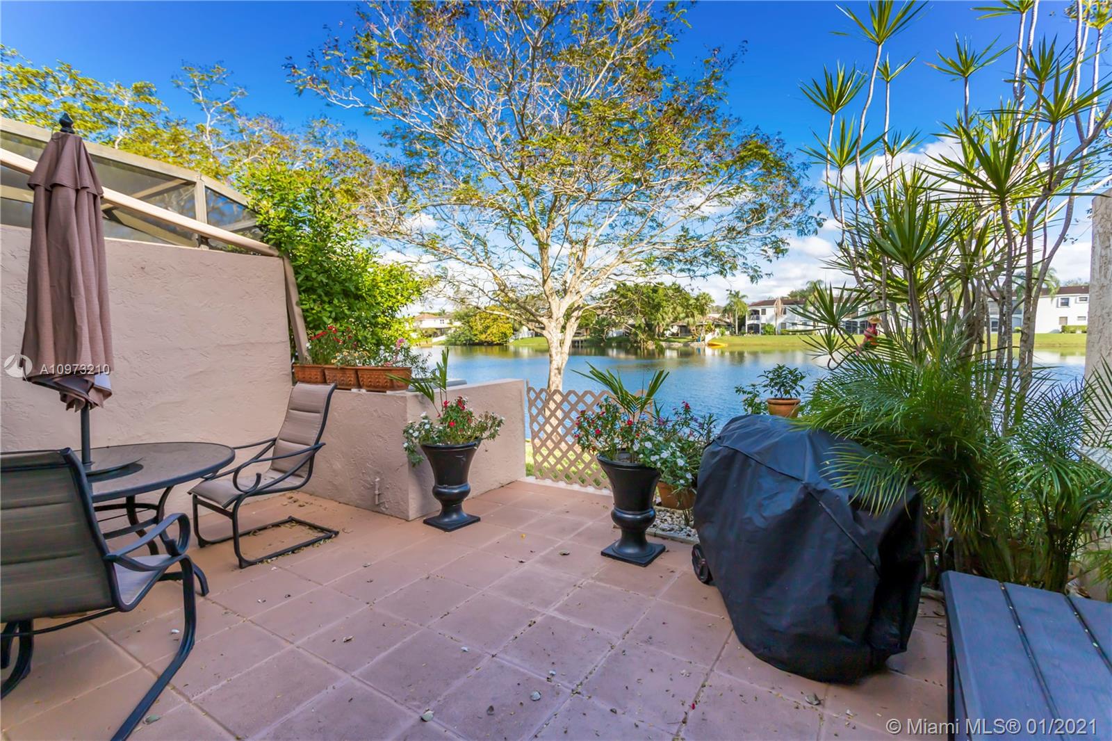 Original builder's model. Come and enjoy this spacious Townhome with high vaulted exposed wood ceilings located on the very wide lake, offering many custom extras such as the custom built-in wall unit which coincides with the wood exposed ceilings in the Living room. Additional features include track lighting throughout, wood laminate floors, newer porcelain tile floors in the kitchen, updated Stainless Steel appliances (LG & Kenmore), custom kitchen exhaust system, added switches throughout, fairly new central a/c system, built-in recess lighting in the bedrooms, updated master bathroom vanity, exterior landscape lighting, and a truly well maintained unit including annual roof maintenance. Unit includes 2 shaded Open Parking Spaces and plenty of guest parking.
