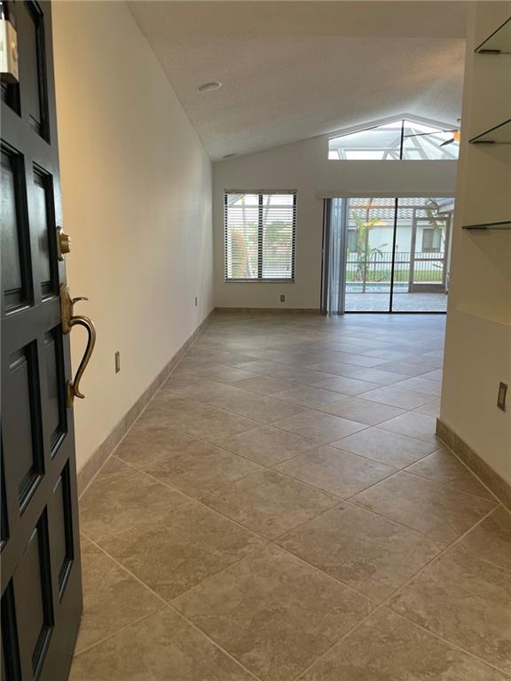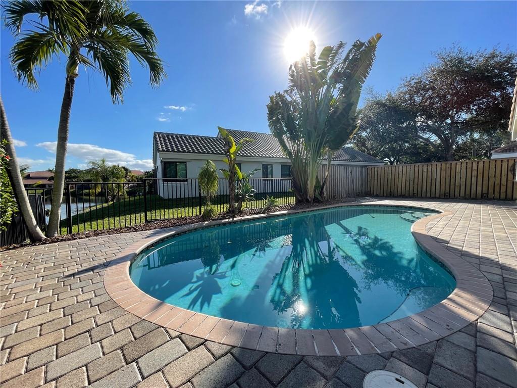 OPEN HOUSE 12/20/20 FROM 12-3. Walk into this spacious, bright and beautiful 3 bedroom 2 bath home with a 2019 barrel tile roof, its vaulted ceilings, tile floors throughout and plenty of natural light, offering an amazing view of the lake and salt water pool. The custom kitchen features stainless appliances and beautiful granite countertops. Stepping out of the living area you will enjoy the large 20x20 screened patio area with a new enclosed 32” TV. Perfect for social distance entertaining. The master bedroom with en suite bath has a large soaking tub, fully tiled stand up shower, double vanity sinks and two walk-in closets. Accordion Hurricane shutters are just some of the added features awaiting you. The property was freshly painted inside and out, and also has a two-car garage.