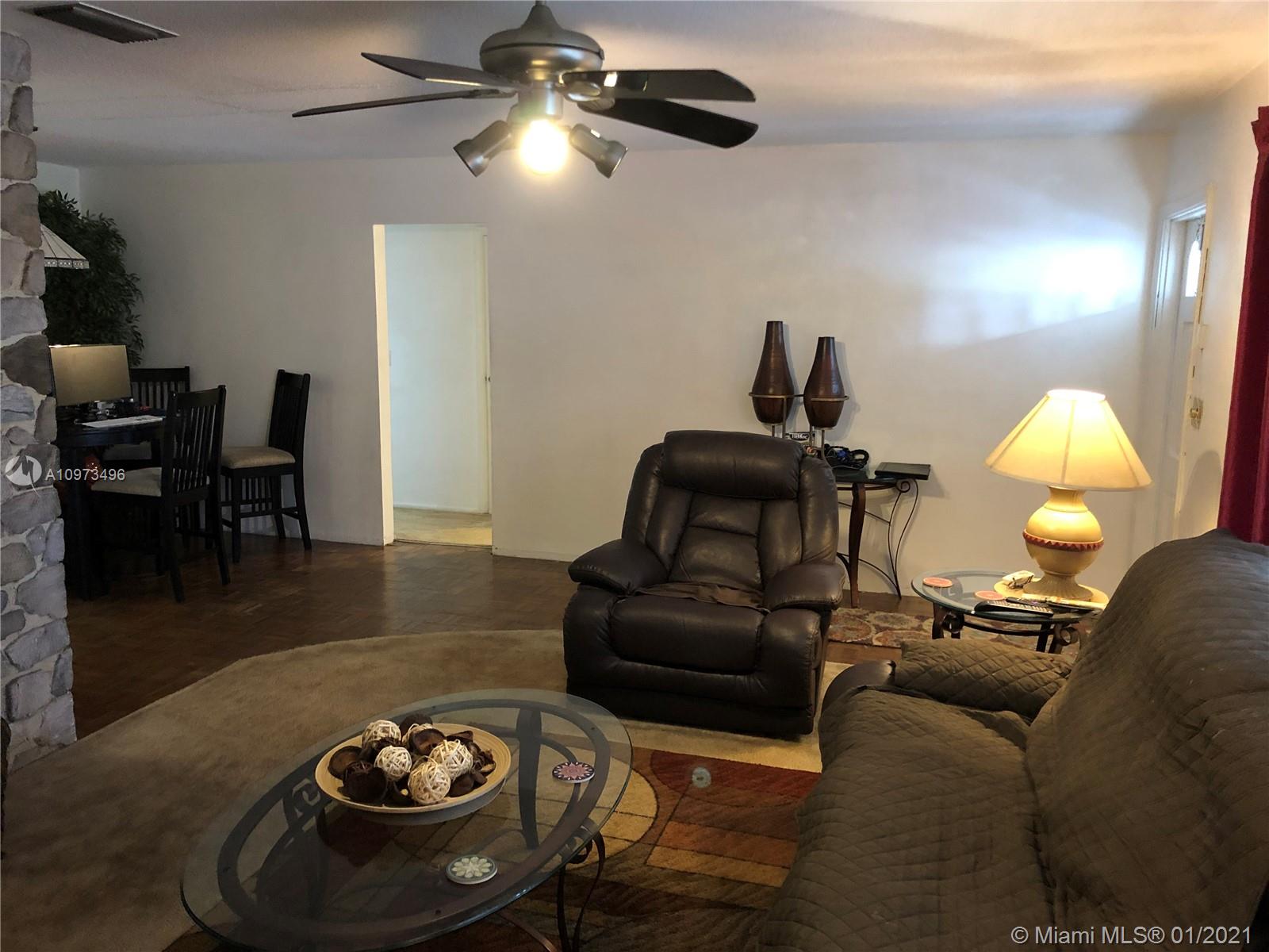SPACIOUS 2 BEDROOM/ 2 BATH HOME, CORNER LOT. LARGE EAT IN KITCHEN WITH LOTS OF CABINET SPACE. FORMAL DINING ROOM AND LIVING ROOM WITH ELECTRIC FIREPLACE. OVERSIZED FAMILY ROOM WITH BUILT IN BAR AREA. HOME COMES WITH A SCREENED IN POOL AND FENCED YARD. 1 CAR GARAGE. NEW ROOF JUST INSTALLED. NEWLY SCREENED POOL AREA. CIRCULAR DRIVEWAY WITH LOTS OF PARKING AND MUCH MORE. MINUTES TO HARD ROCK AND MAJOR ROADS. MULTIPLE FRUIT TREES INCLUDING MANGO, STARFRUIT, AVOCADO AND TANGERINE. MUST SEE, THIS ONE WONT LAST... CASH OR CONVENTIONAL FINANCING ONLY!