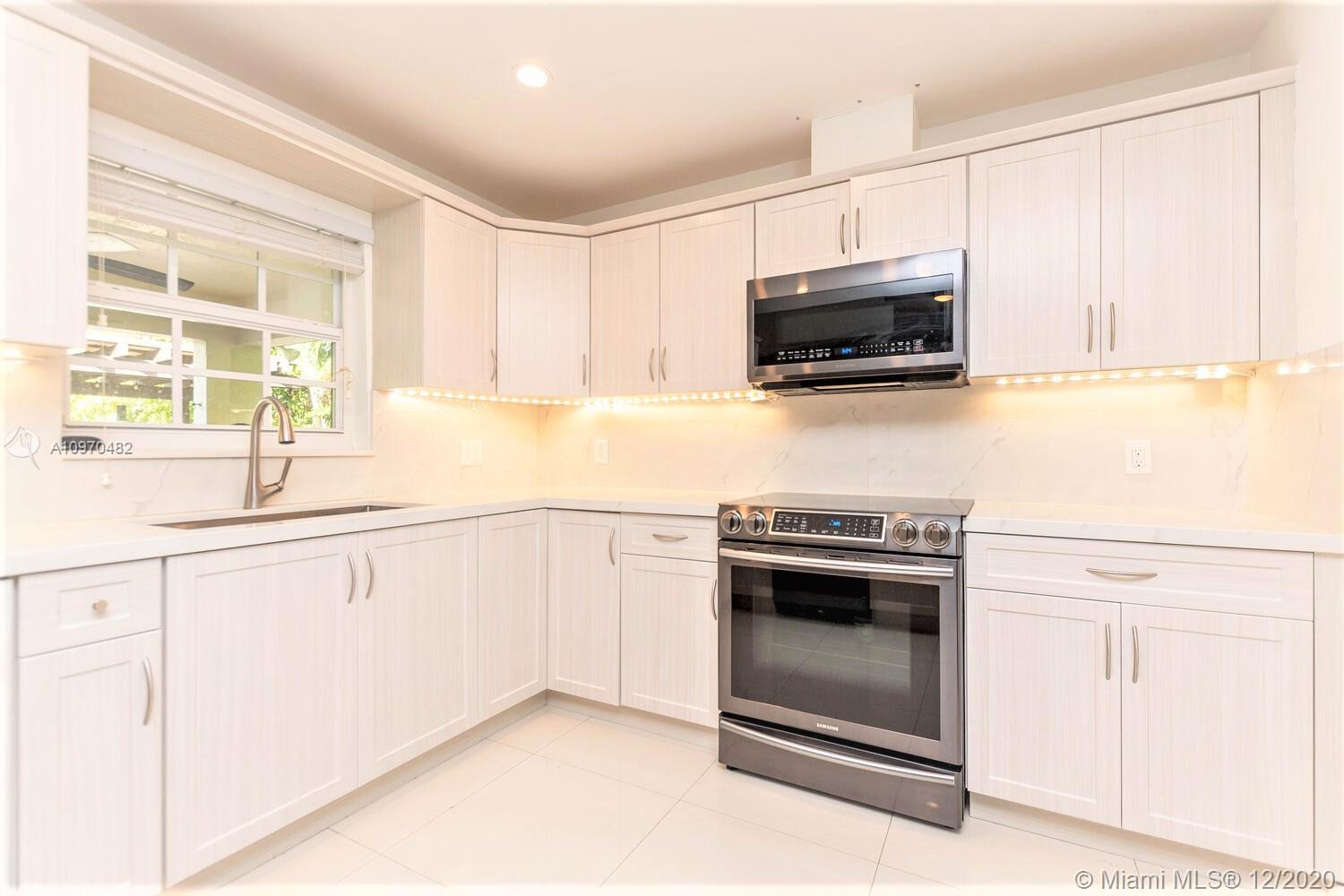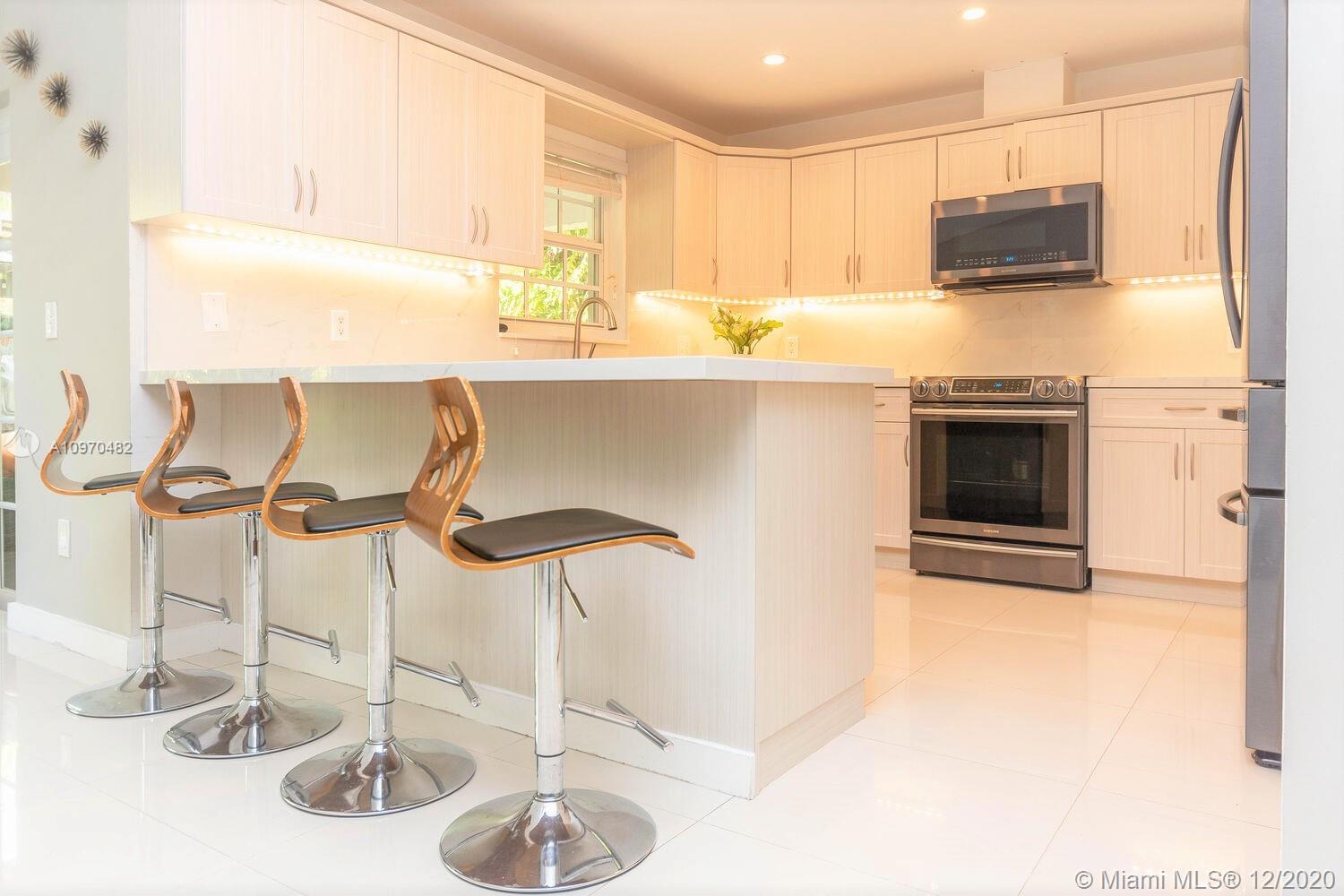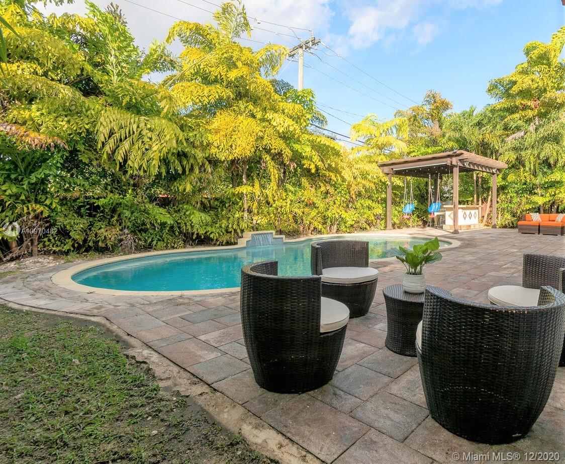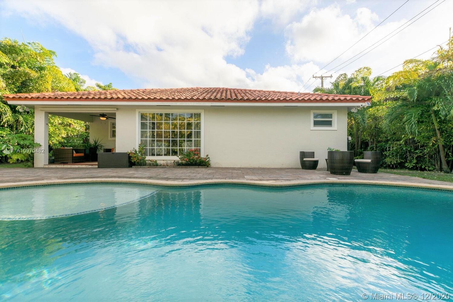 Quaint walking distance to Downtown Miami Shores! Modern 'smart house' with every bell and whistle...just move right in! High Vaulted ceilings and beautiful OPEN floor plan! Pretty view of the NEWER pool w/salt-water system from the front door and all living areas! Detached pergola & built-in GRILL+ bar too! NEW roof, NEW kitchen w/breakfast bar and lots of cabinetry...all NEW APPLIANCES in warranty, updated bathrooms, and a customized TWO CAR garage w/epoxy flooring and built-in cabinetry! NEW AC+ NEW Ductwork w/smart thermostat;Automated Sprinkler system+ new pump. Custom remote blinds/shades+custom interior doors.Whole-house water treatment system! Impact WINDOWS+ DOORS! Built-ins in walk-in master bedroom closet.New whole-house tankless water heater!