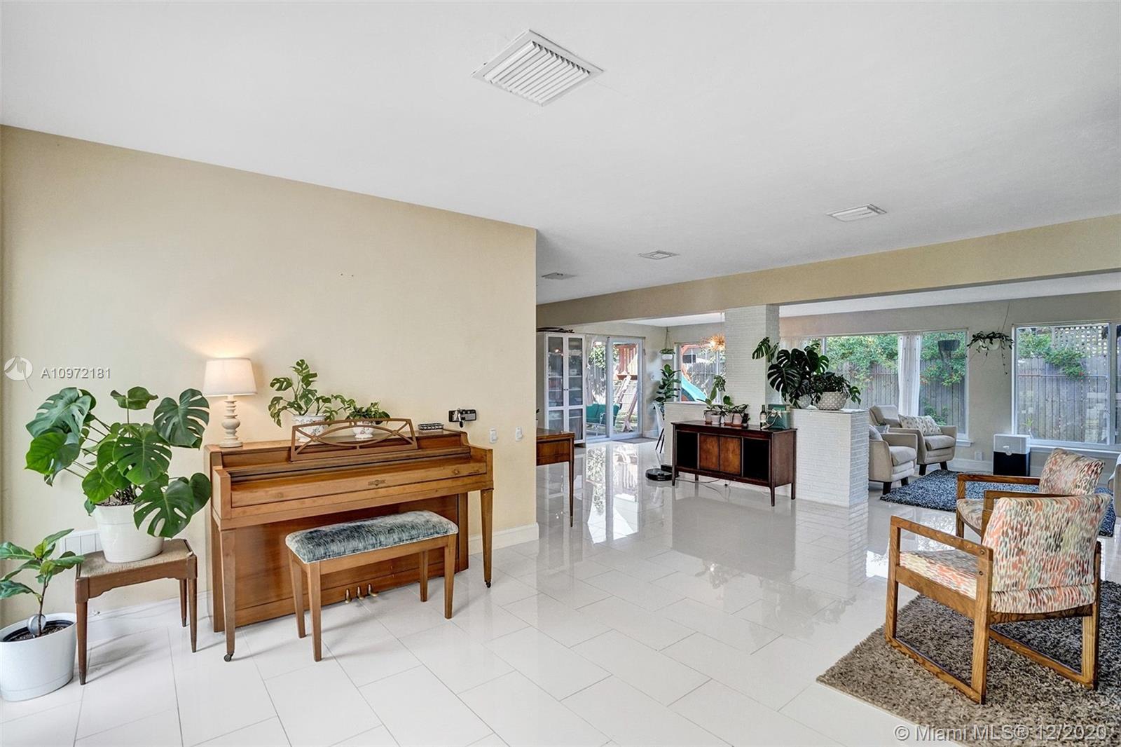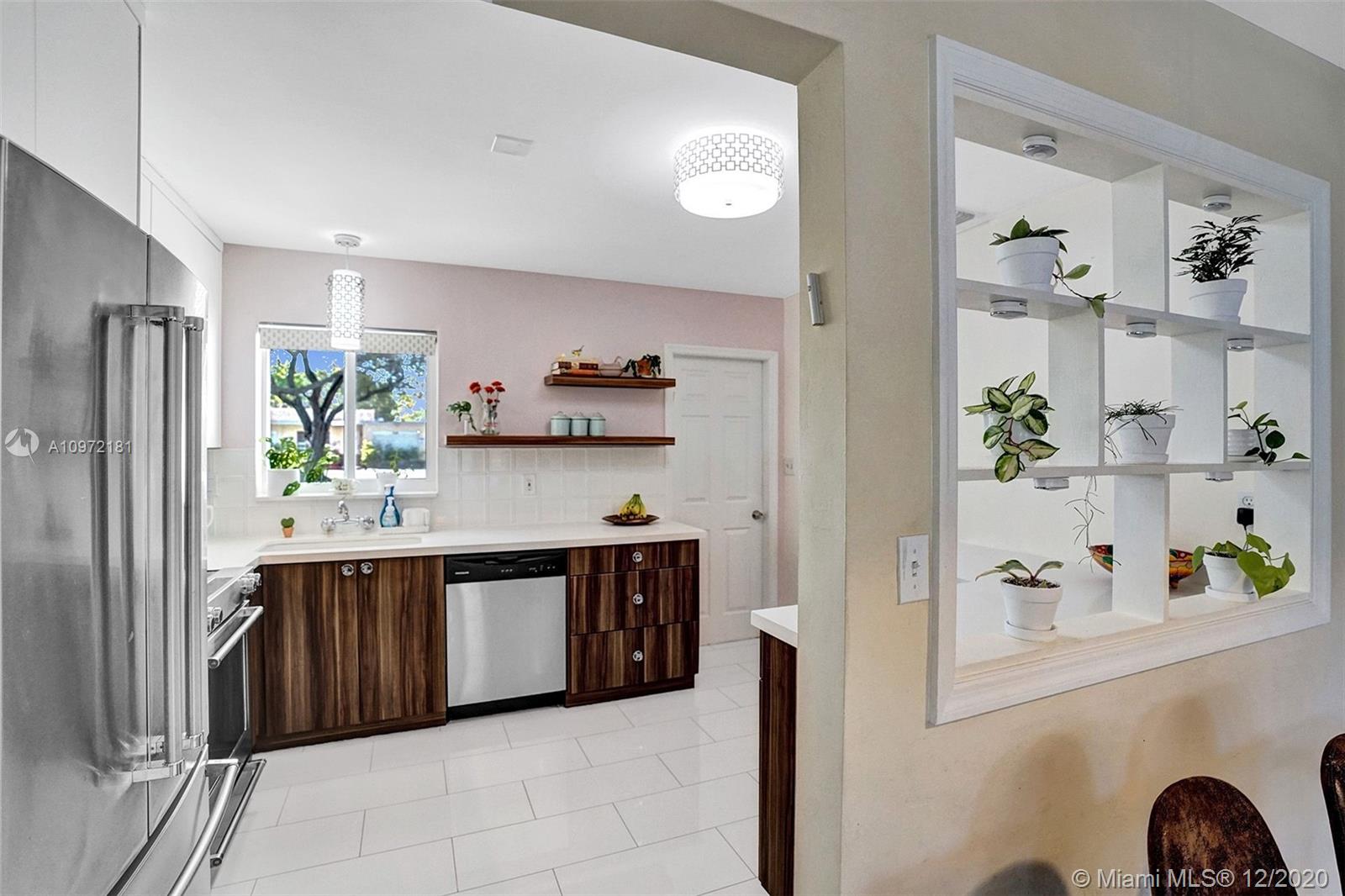 Beautifully Updated Home in Desirable and Rarely Available Lawn Acres in Hollywood. One story with lots of natural, bright lighting from Massive Impact Windows with views to the private back gardens. Entertain outdoors in your private fenced-in Back Patio and Backyard. Relax under the awning and enjoy a plentiful Mango tree that fruits twice a year. Large front patio garden is perfect for neighborhood get togethers along the tree lined streets. Tastefully Updated Kitchen with Kitchenaid Stainless Appliances and White Quartz Countertops. Updated White Tile Flooring runs Throughout the Open Living Spaces. Laundry Room/Mud Room/Pantry adjacent to 2 car garage and kitchen. NEWER ROOF/transferable warranty (3 yrs old), AC (3 months old), Plumbing/Pipes, Electrical Panel. Carpeted Bedrooms.