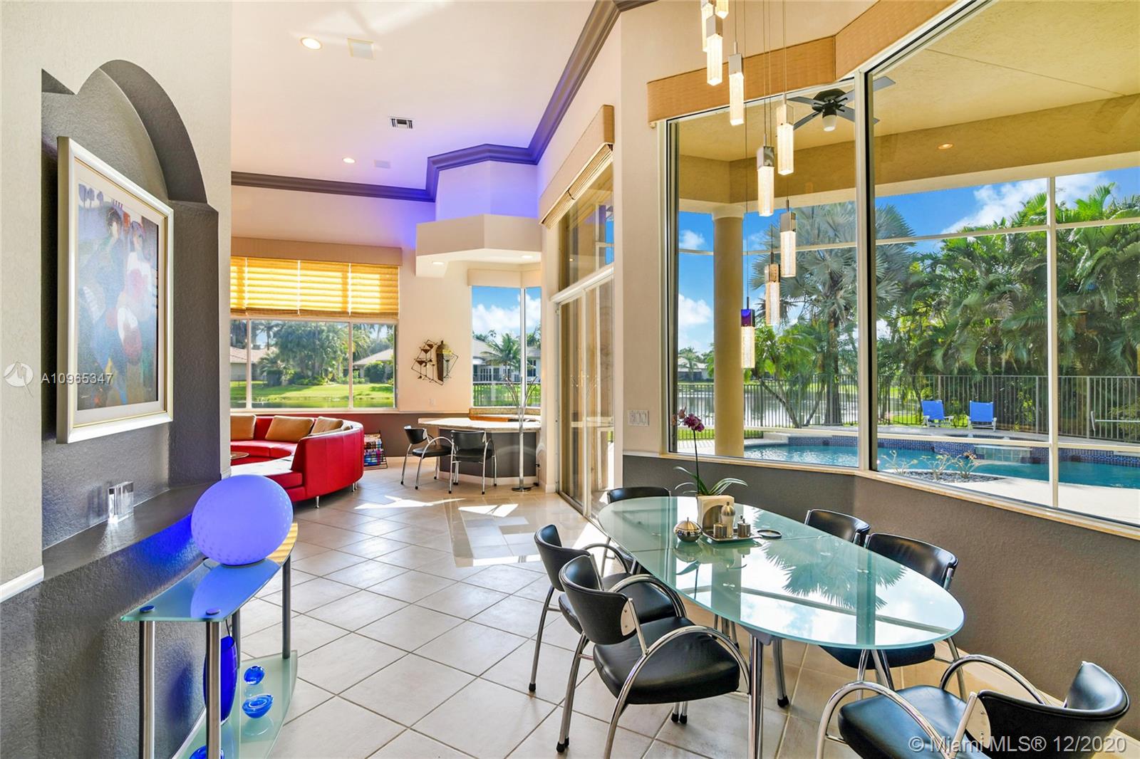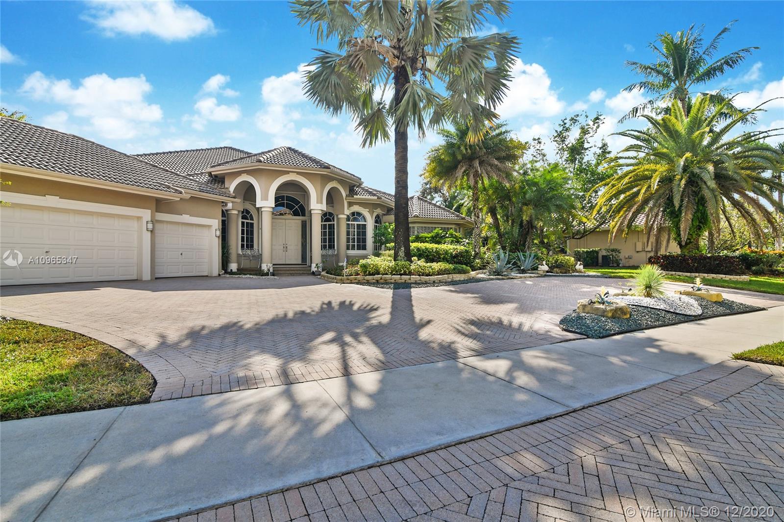 This magnificent estate, beautifully situated in the distinguished community of Provence at Weston Hills Country Club is one of a kind. As you enter you are welcomed by an impressive grand foyer with soaring ceilings, extensive crown moldings and a beautiful view of the lake. This estate features 5 Bedrooms, 4 baths and 2 half baths plus an office on a premium 18,265 sqft waterfront lot with a pool. Fantastic floor plan with 3 en-suite bedrooms, one bedroom/game room, impressive office next to a luxurious master suite with a view of the pool and the lake. Updated kitchen with wood cabinets, granite countertop, formal dining and living rooms, wet bar, 3 car garage and circular brick pavers. Outdoor space ready for entertain or relax in your private backyard with pool and outdoor grill area.