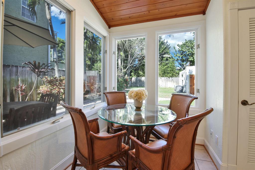 Come see this charming home in historic Flamingo Park located minutes from downtown West Palm Beach! Enjoy the beautiful curb appeal w/ lush landscaping, Chicago brick walkway, and covered entry boasting a pecky cypress front door. Inside delight in a bright, open living space, well-maintained oak floors, and a wood burning fireplace. French Doors open to a spacious Florida Room with wood plank ceiling. Entertain in the separate formal dining room w/French Doors leading to a picturesque patio. Enjoy preparing meals in the well-equipped kitchen with gas cooktop, pantry, and beautifully crafted maple cabinets. A cozy breakfast nook w/wood ceiling offers serene views of the private, fenced backyard. Located minutes from the airport, shopping, restaurants, museums, the beach and more!