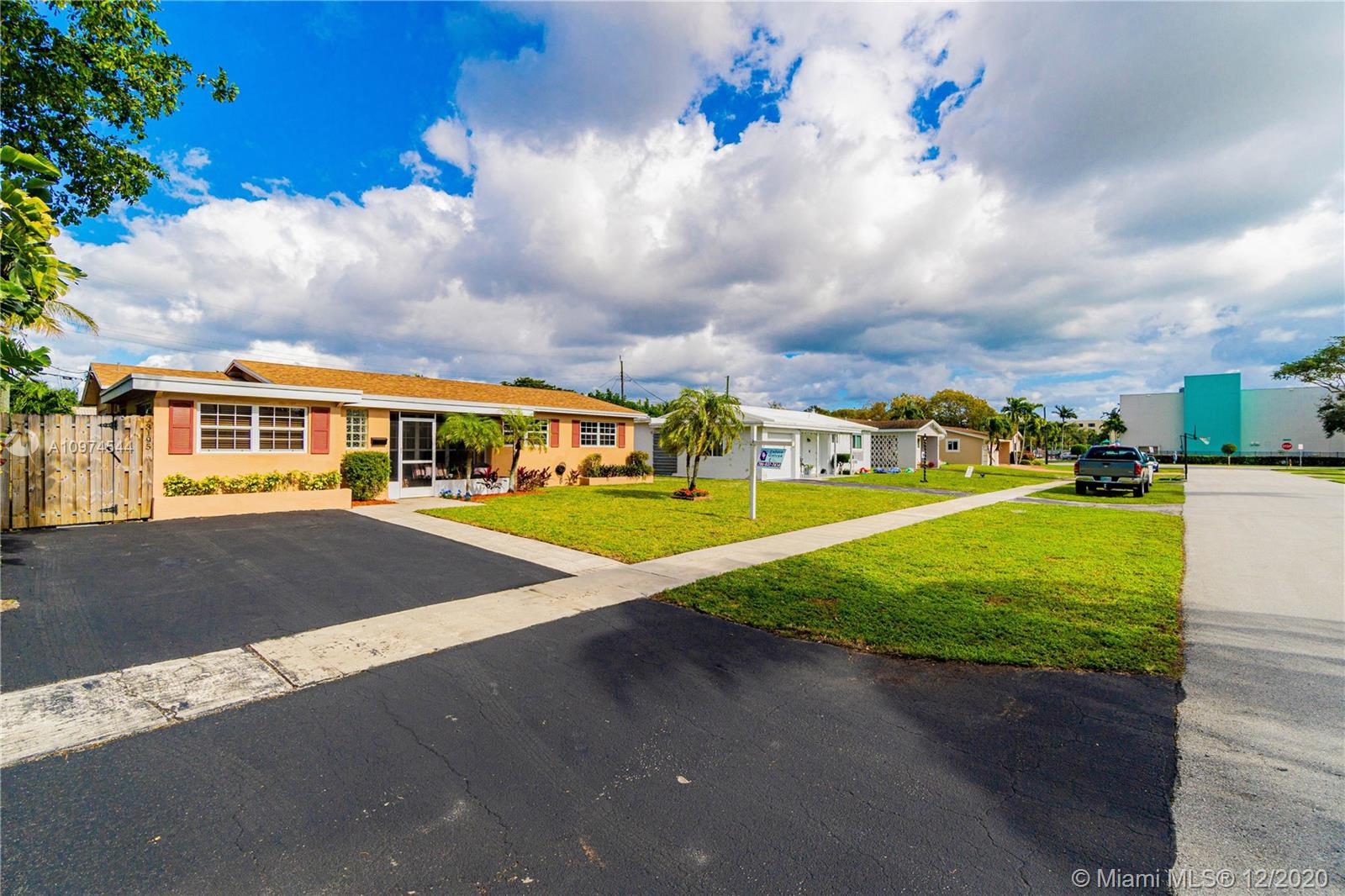 Amazing home located in Hollywood Heights area featuring 3 bedroom & 2 FULL bathrooms, Sun room, den that can be use as an office, or family room. Kitchen has newer cabinets and stainless steel appliances. Huge living room area. Freshly painted throughout, Huge laundry rooms with front load washer and dryer. Lots of closet space. Home has carpet in rooms and living room and ceramic tile in the rest of the home. All windows have hurricane shutters. Property has a huge back yard room for a pool. Home has new roof less than 1 year old, newer Air conditioning Uni, newer water heater. Property has a stand by working generator worth over $10k SOLD AS IS