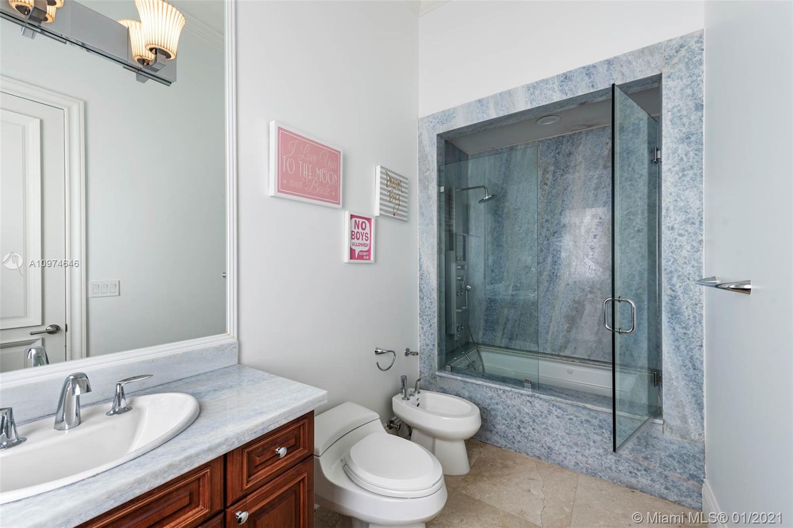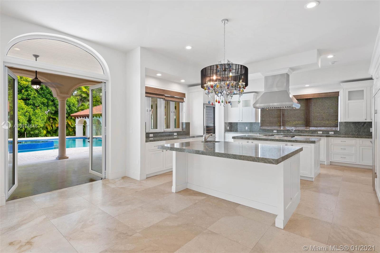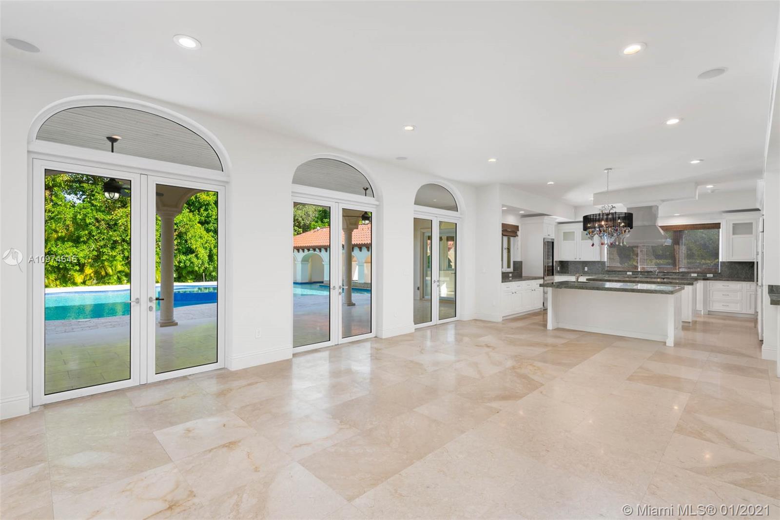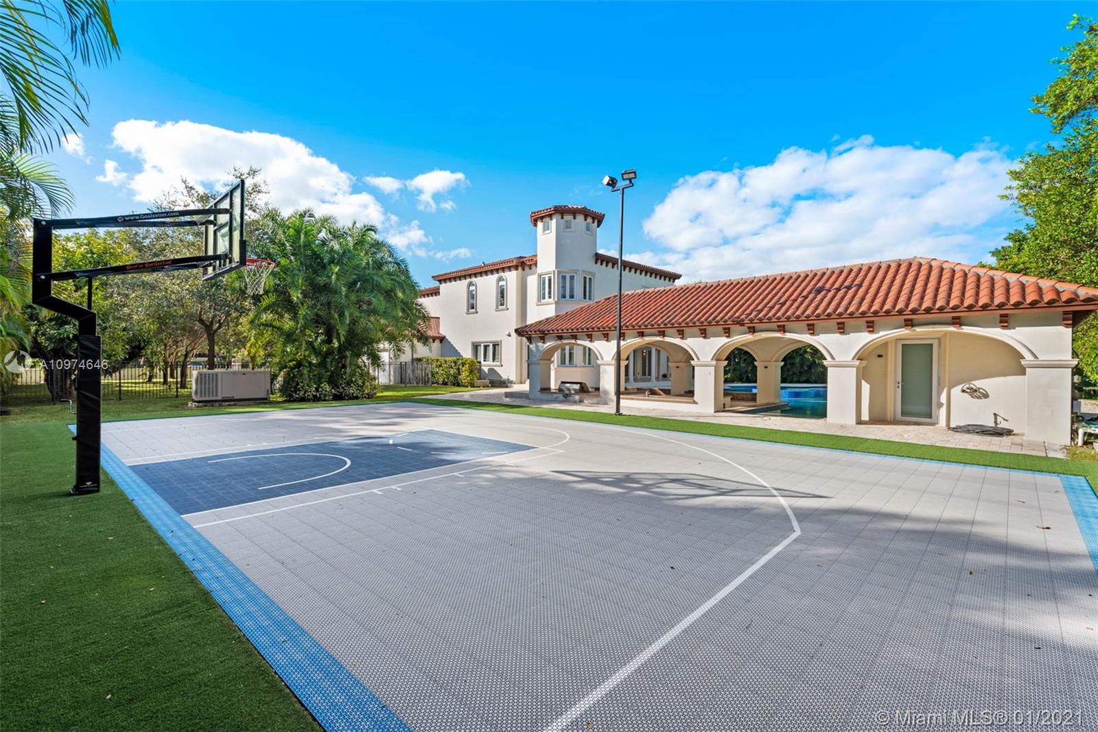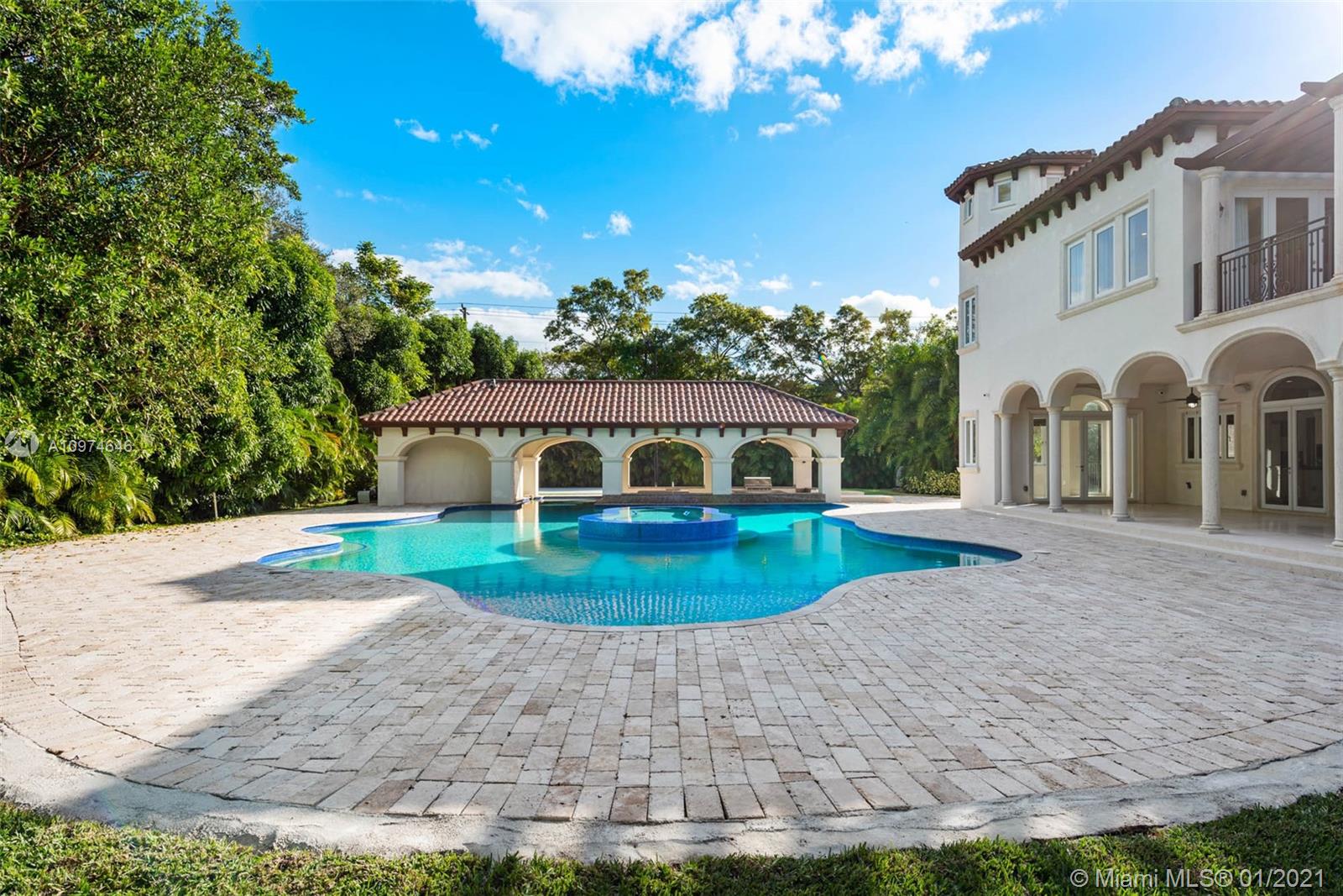 Superlative Mediterranean Masterpiece located on a stunning corner lot in coveted North Pinecrest. Awing interior with a soaring 2-story entry hall, huge windows, wood and marble floors, refined finishes & details. 5 bedroom, 5/2 bath perfectly spread designed over 7,628 SqFt of living area. Formal living and dining rooms, oversize chef’s kitchen with two cooking islands, WOLF and Subzero appliances and pool views is an epicurean dream. A spectacular oasis with heated salt water pool, expansive gazebo and patio with full summer kitchen – impeccably designed for entertaining inside & out. Full home generator, elevator, basketball court and three car garage complete this Pinecrest home.