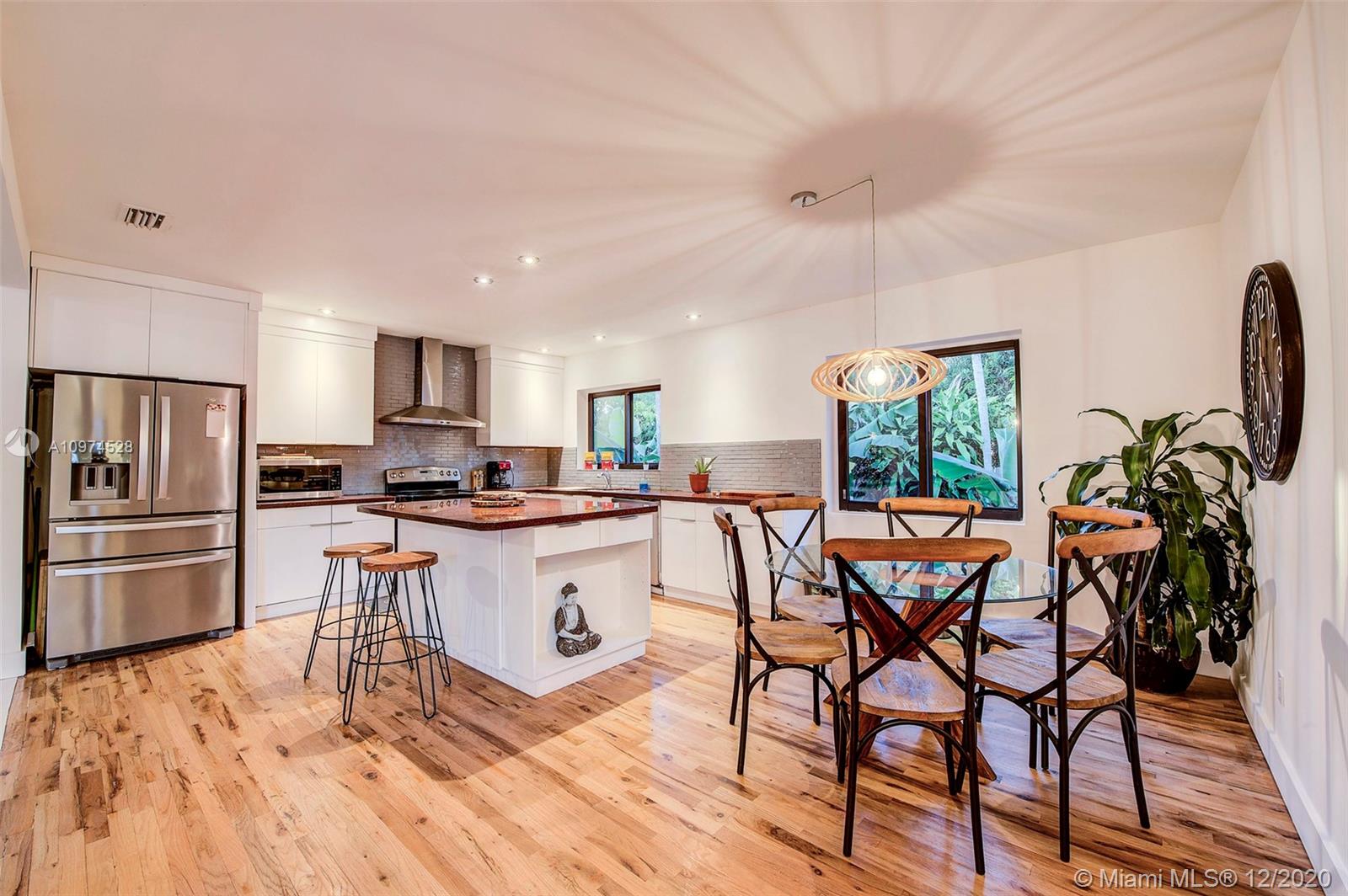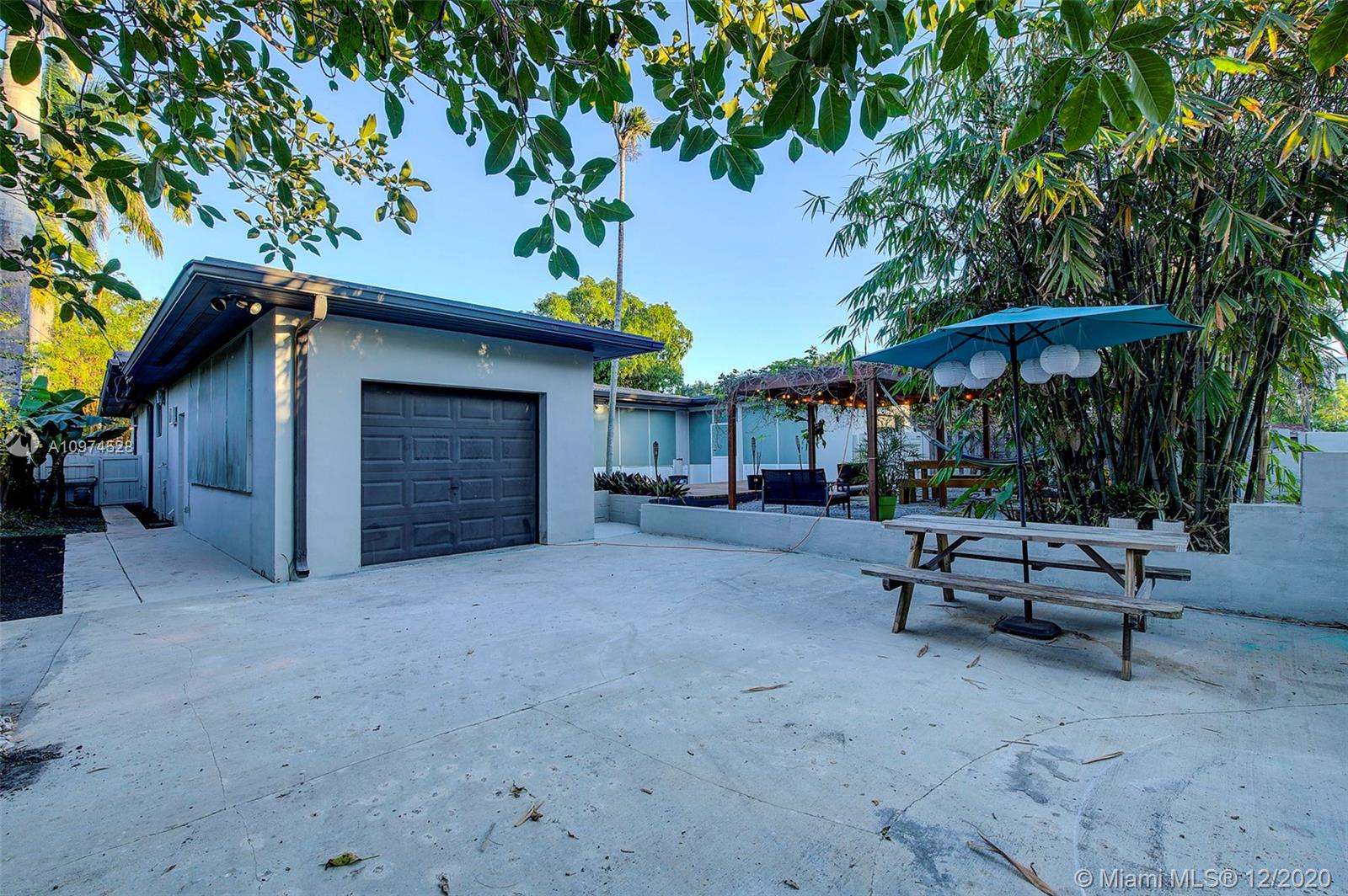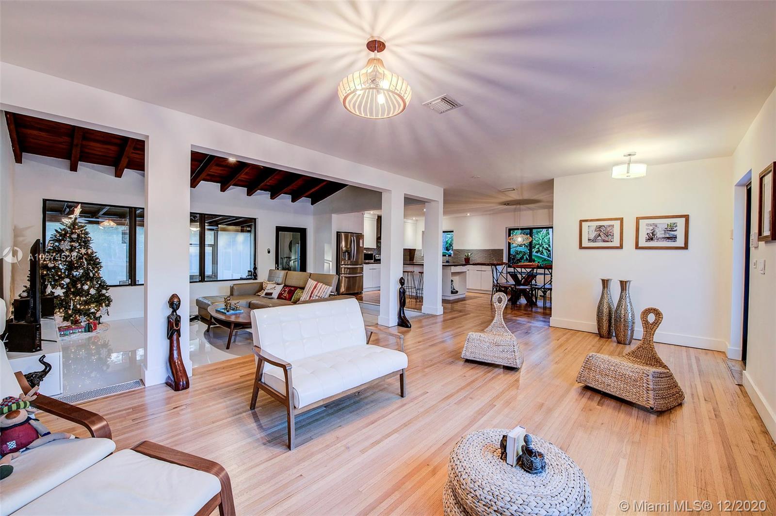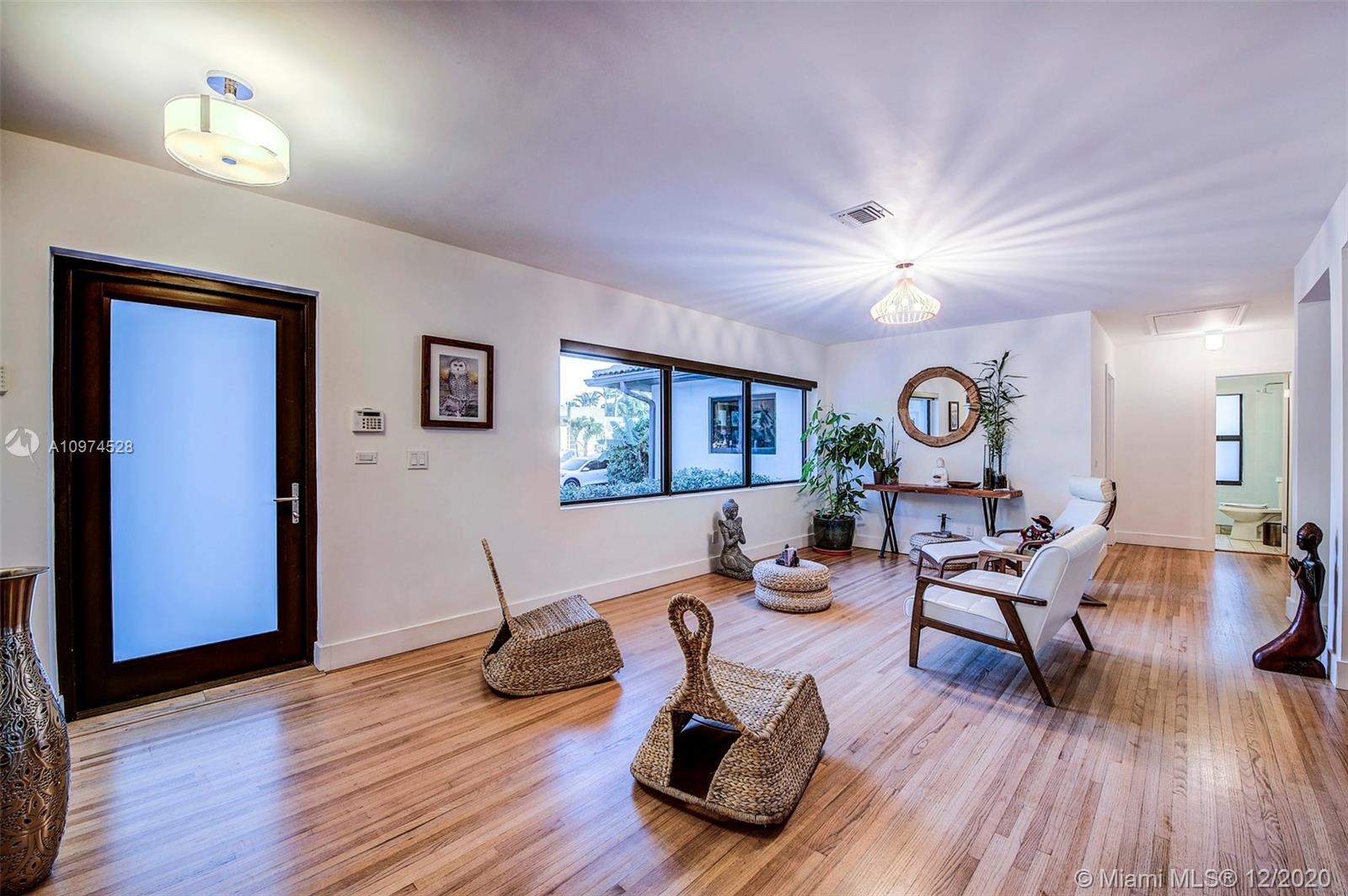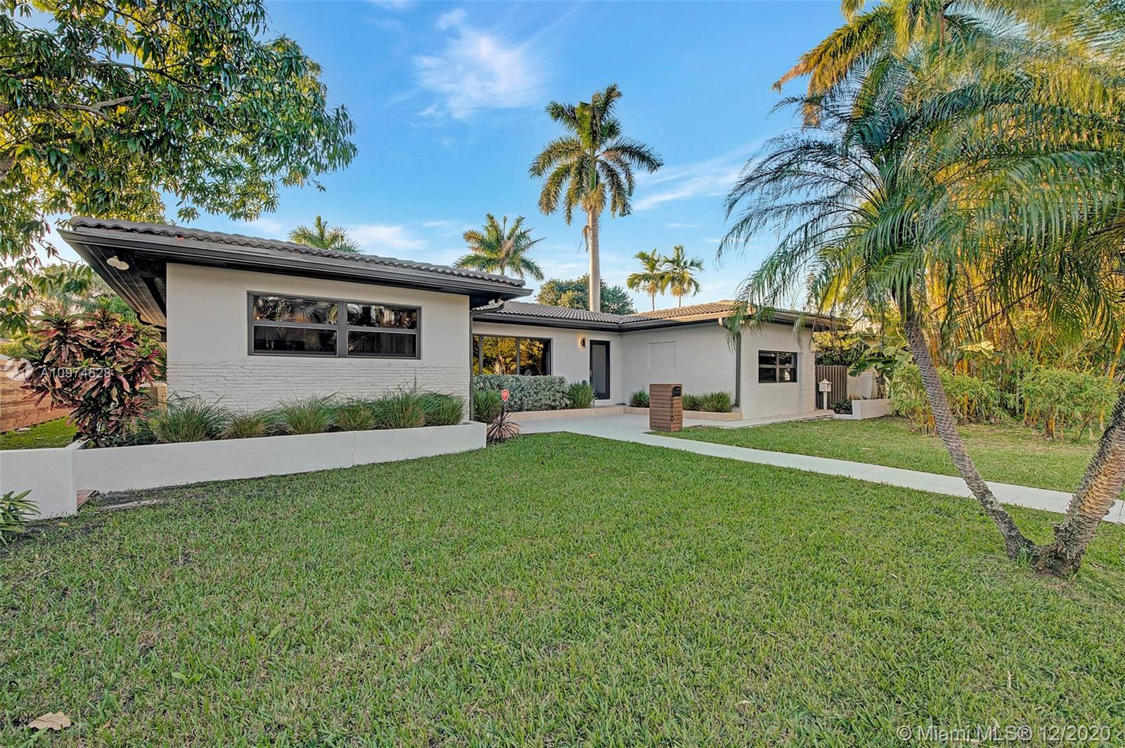 Stunning Move In ready House! 3/3 Mid Century architecture house. Chef's kitchen with a huge granite island, stainless steel appliances that are energy efficient certified. Hurricane impact windows, alarm, electronic gate ,modern w&d, new AC & water heater,Eléct blinds in all rooms, ring camera install. Studio & a separate entrance to potentially be an in-law suite, updated bath & spa tub. Slip Bedroom plan build w/permits in 1978 as per tax réc. HUGE garage space that accommodate 4 cars OR 2 garages + carport) space for BOAT in the back. Space could be transformed into large outdoor living room or outdoor dining room with/kitchen perfect for entertaining,screened covered porch,and so much more Quiet area located in north of MIA Shores Country Club..only one way into the neighborhood.