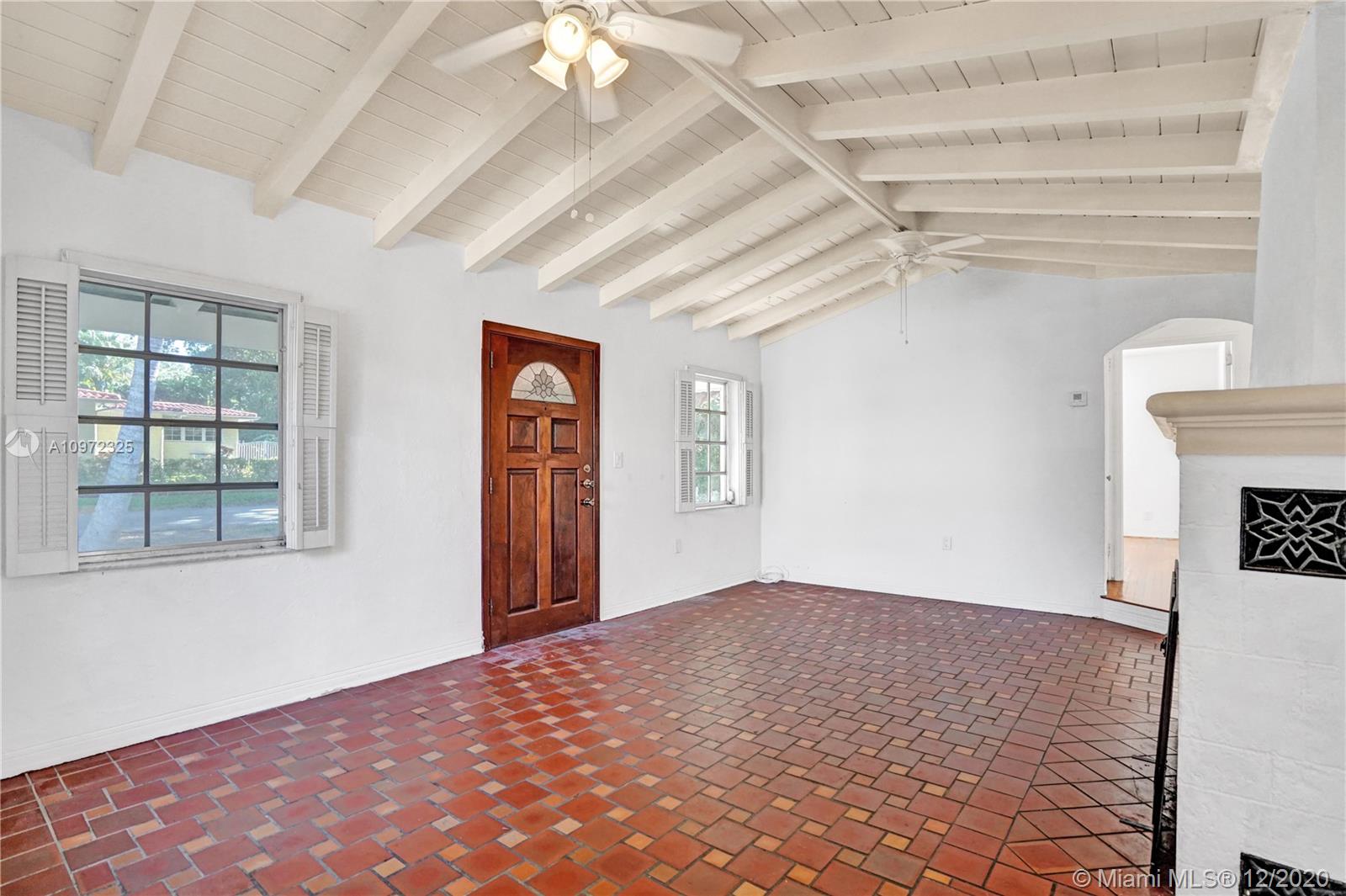 Tranquil and spacious 3bed/2 bath home in the heart of Coral Gables. This is a great home, whether you are looking for a cozy starter home or seeking a renovation project with serious potential. Step into the vast, 10,000 SqFt fenced in lot through a charming front porch. Formal living area with a fireplace, cathedral ceilings, and a set of french doors leading to the expansive backyard, which is perfect for entertaining. Dining area, large family room, and a separate laundry room with ample space for a gym or art studio. This home is located on a quiet enclosed street, conveniently located by the Granada Golf Course, University of Miami, the Miami International Airport, and fine dining and shopping options. 818 Pizarro is waiting for you! Easy to show!