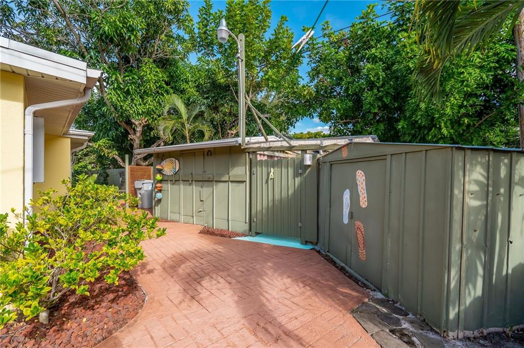• Exterior Feature:Courtyard, Fence, Lighting, OutdoorShower, Shed