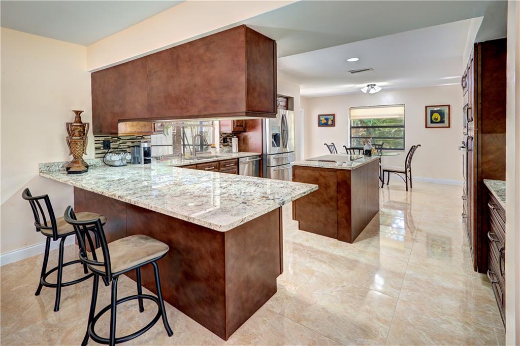 Don't miss this spacious, extremely UPDATED home!! Drive up to this secluded 4 bedroom home on oversized private lot with driveway long enough to fit 8 cars. This lushly landscaped home features large living area, formal dining, oversized family room & great updated eat-in kitchen with newer appliances & recently replaced French doors leading to screened patio area. Large laundry room with extra storage. Newer pavered driveway, hurricane impact windows in the front of the home, Brazillian Porcelain tile, Brazillian granite counters in the kitchen, new kitchen features pull outs, accordion shutters in the back of the home, screened pool enclosure, large master bedroom, walk in closets, this home has it ALL!! NO HOA!