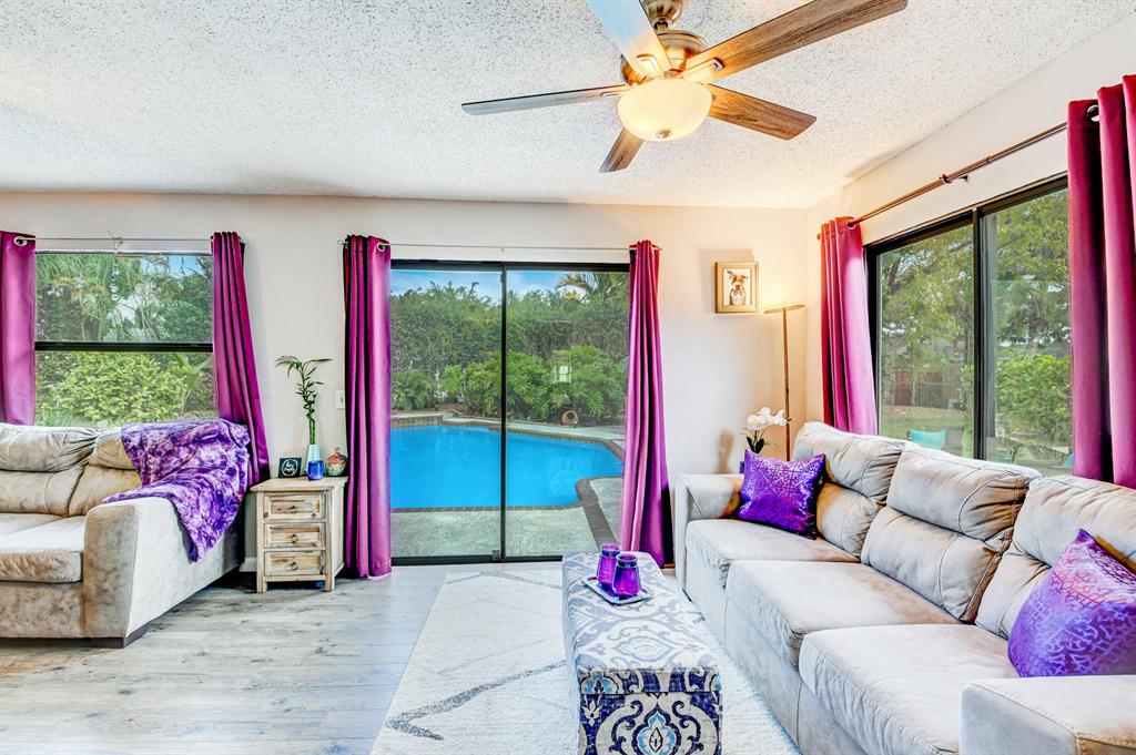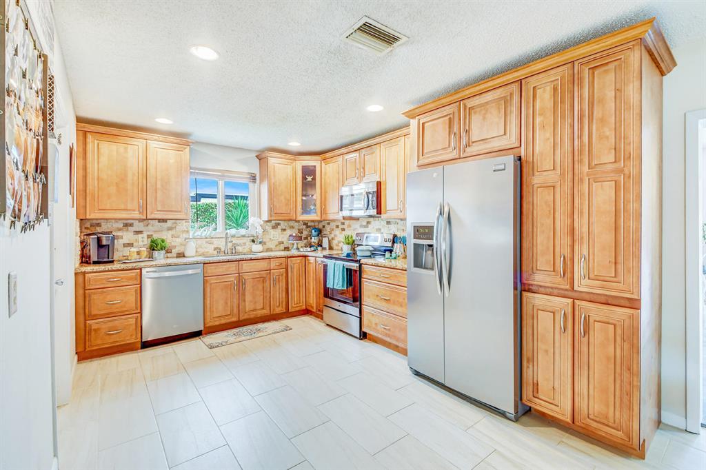 Spacious & open 4 Bedrooms+2 Bonus rooms, 2 Bath, 1 Car Garage, 2 car wide driveway, ENORMOUS POOL Home w/fenced in huge yard (over 10,000 square feet!) with tons of landscaping! Located on one of the biggest lots in Palmetto Pines Plus on a cul-de-sac. Tile and laminate flooring throughout. Fabulously updated & stylish kitchen w/granite counter tops, natural stone backsplash, newer stainless appliances & a plethora of custom wood cabinets. The master bedroom has an en-suite bathroom plus a door that leads out to the pool, making it a cabana bathroom too! Master suite & guest bath are both updated. Impact doors & windows/Roof 2006/flat roof 2020. Huge bonus room makes a great family room or man cave & 2nd bonus room makes great office or extra bedroom. Meticulous condition! Move in Ready!