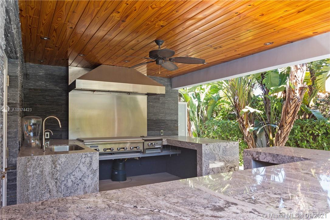 Exquisite custom remodel on Mashta Island on 10,000 sq ft lot. Elegant marble paver circular driveway + side boat/ golf cart parking. Bright & Light Foyer entry into wide open marble floored Living/Dining/Kitchen areas with views of soft salt heated pool (Master opens to pool as well). Enormous Chef's kitchen w/double ovens/wine cooler/Gas Viking appliances/cook island & amazing granite counter space. Gorgeous wood floors in Bedrooms. Master has Steam Shower & large walk in closet w/window. . Wood fireplace. Outside roof covered custom BBQ area/Grill/Sink/Granite counter/seating for 12. Lovely exterior lighting. Beach Club Membership.