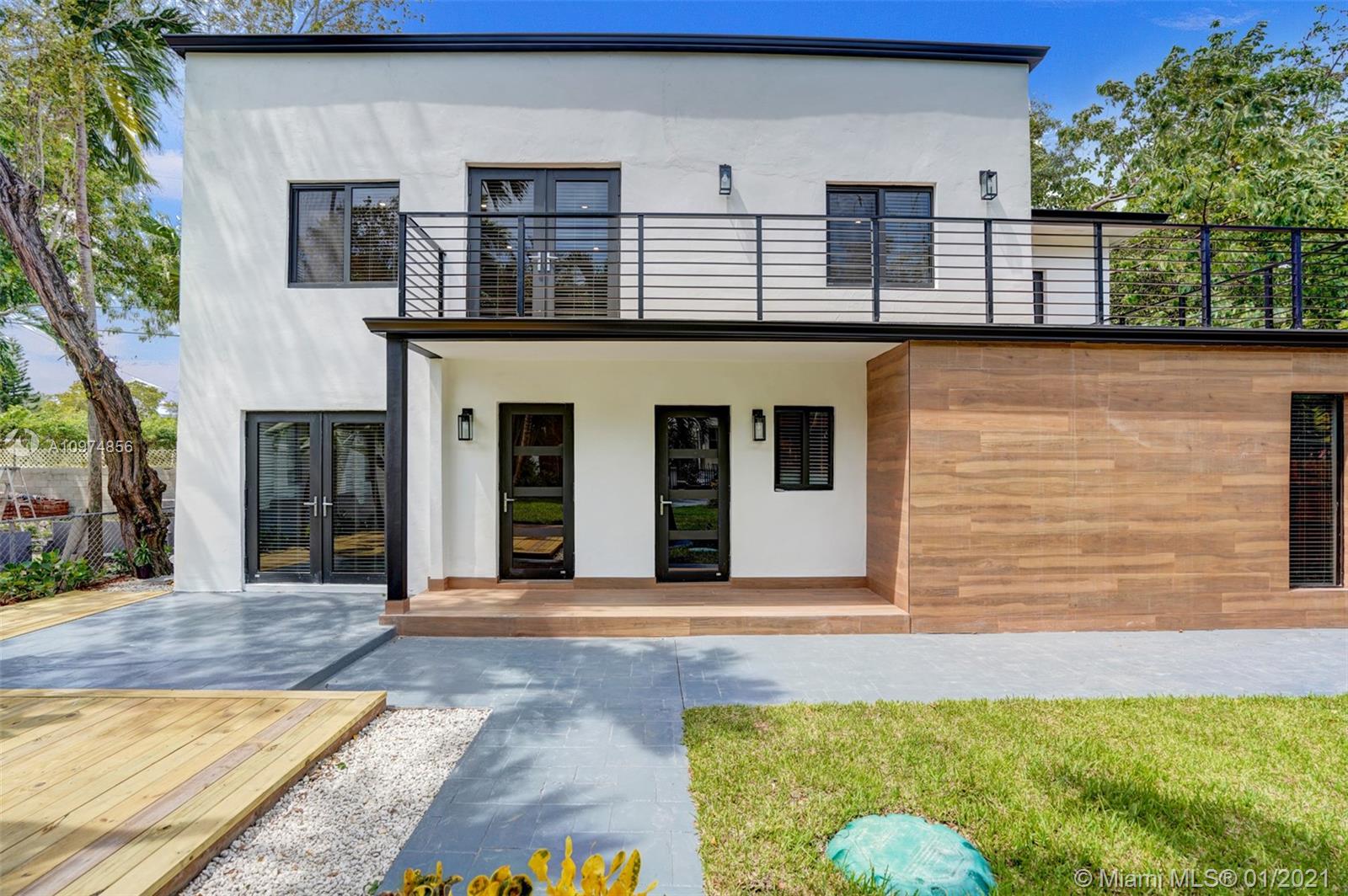 Investor opportunity or ideal 2-family residence. Tropical-modern duplex set on a gated lot in S. Coconut Grove. Total renovation w/legal variance as 2 separate residences. Updates include: new roof, new recessed lighting, completely updated electrical & plumbing, new contemporary-style bathrooms, renovated balcony w/new railings, new stucco on all exterior walls & new hurricane impact windows & doors throughout. 1st flr. unit: 3BR’s/2BA’s, new European-style kitchen(w/ new SS appliances & quartz countertops), travertine flooring and outdoor terrace. 2nd flr. unit: 3 BR’s/2BA’s, kitchen w/wood cabinetry & all new SS appliances, new HVAC, wood flooring + private balcony. Current rental income $7000 mth w/upside potential. Walk to the Grove village center’s cafes, bayfront parks & marinas.