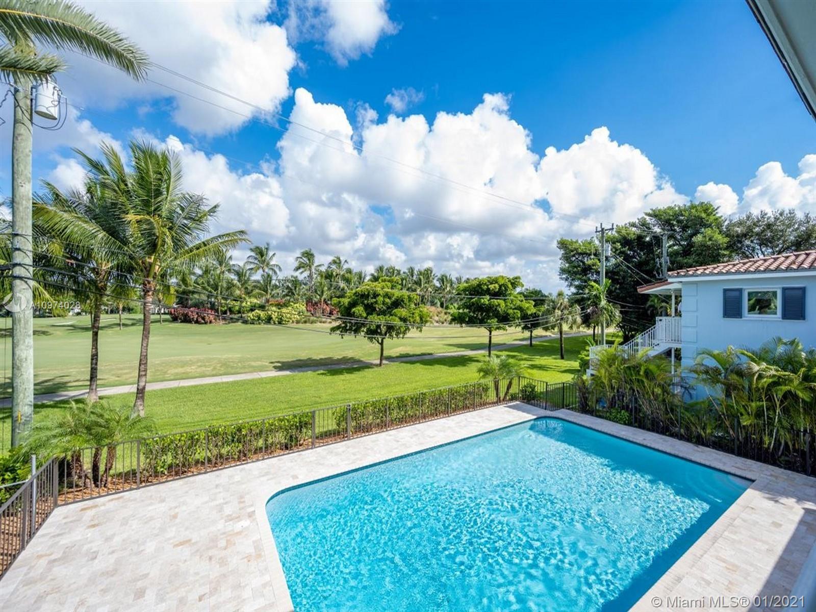 Beautiful 2 story Duplex on the Riviera Golf Course! This unique Duplex features a total of 4 bedrooms and 4 full baths. The main ground level unit boasts a total of 3 bedrooms and 3 full baths with an open kitchen and expansive living room area overlooking the patio, oversize pool & gorgeous views of the golf course. Master bath features dual sinks, a walk-in shower and soaking tub. Kitchen features granite counters, all new appliances, & wine cooler. The upstairs unit with its own entrance features a one bedroom, one full bath suite with a complete kitchen and separate open living room area with its own private balcony overlooking the pool & golf course. 2 car garage. All new impact windows & doors throughout. Walking distance to the University of Miami campus and Doctor’s Hospital.