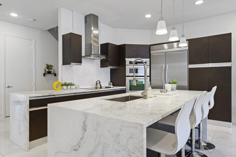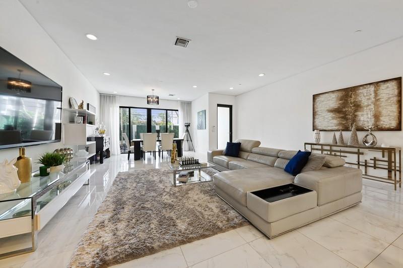 This is impressive!! Luxurious ,Spacious and sophisticated three and a half bedroom home with its own private pool and spacious third floor terrace. Three stories with elevator for convenience . Beautiful kitchen waterfall marble counter ,stainless steel appliances . Impact glass , solar tinted windows with electric, blackout shades shades in Primary Bedroom.Huge family room