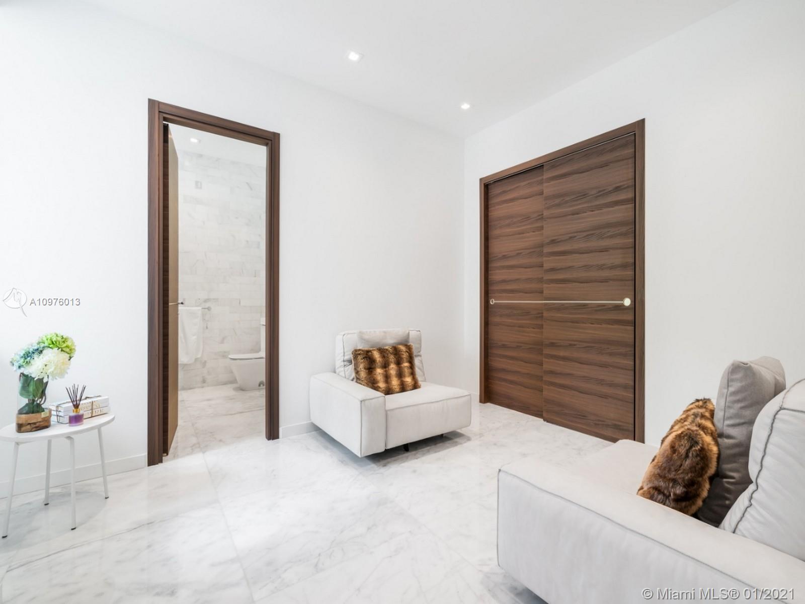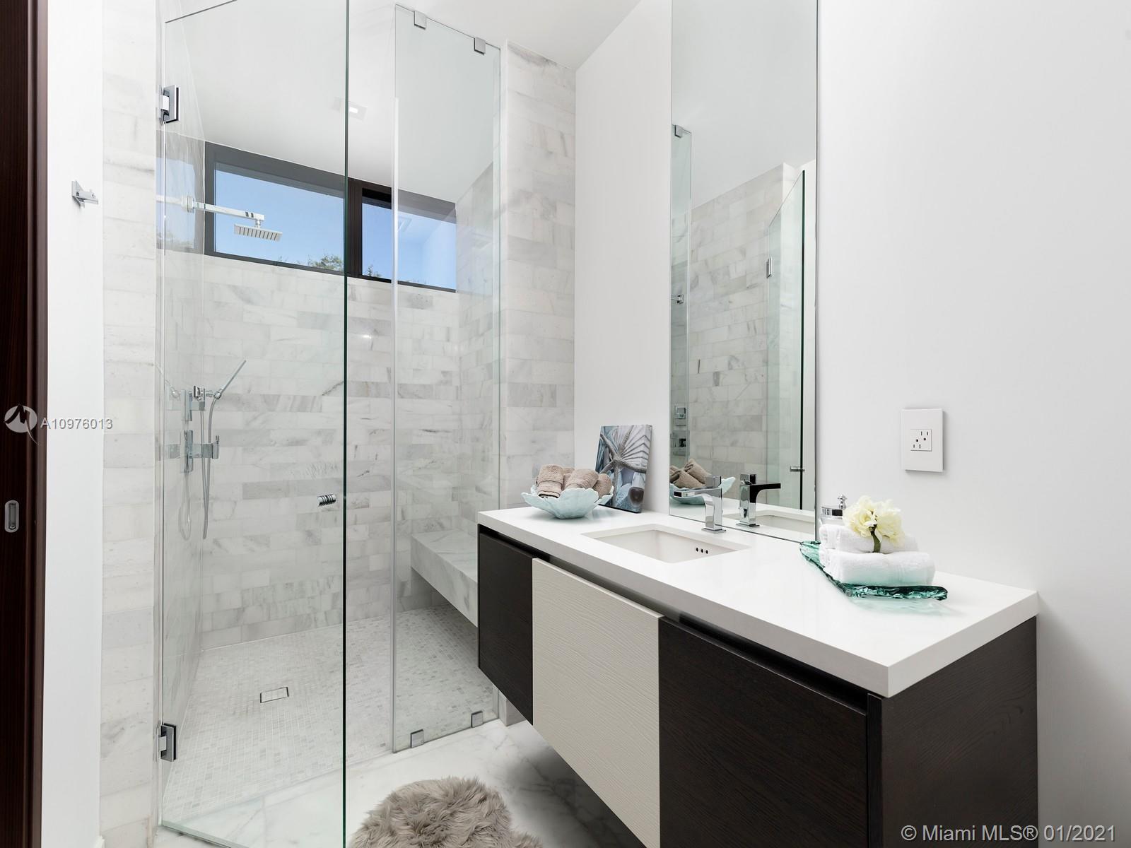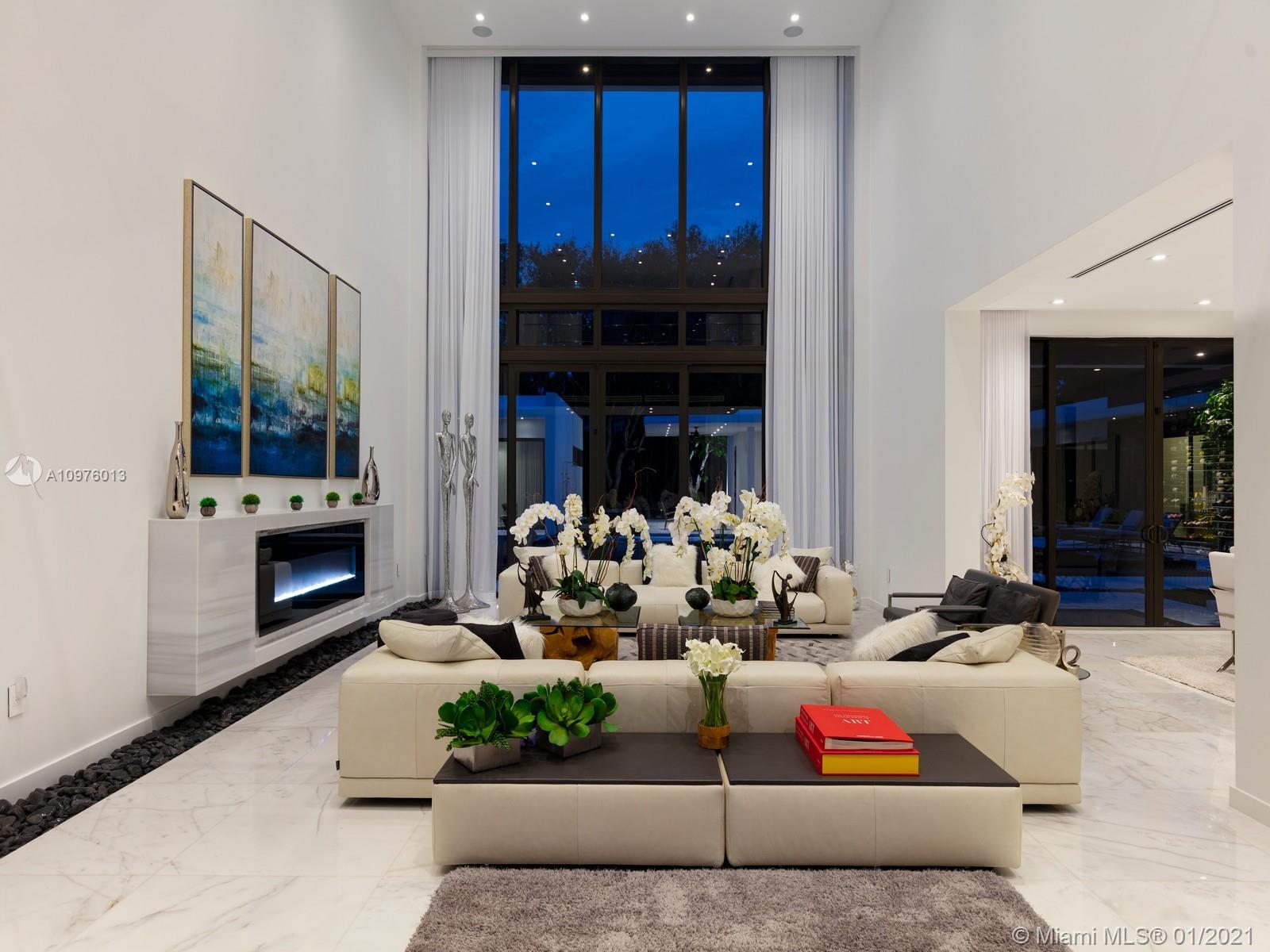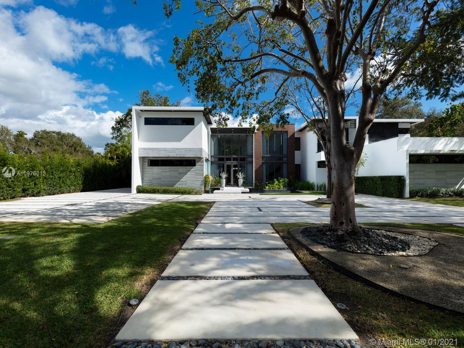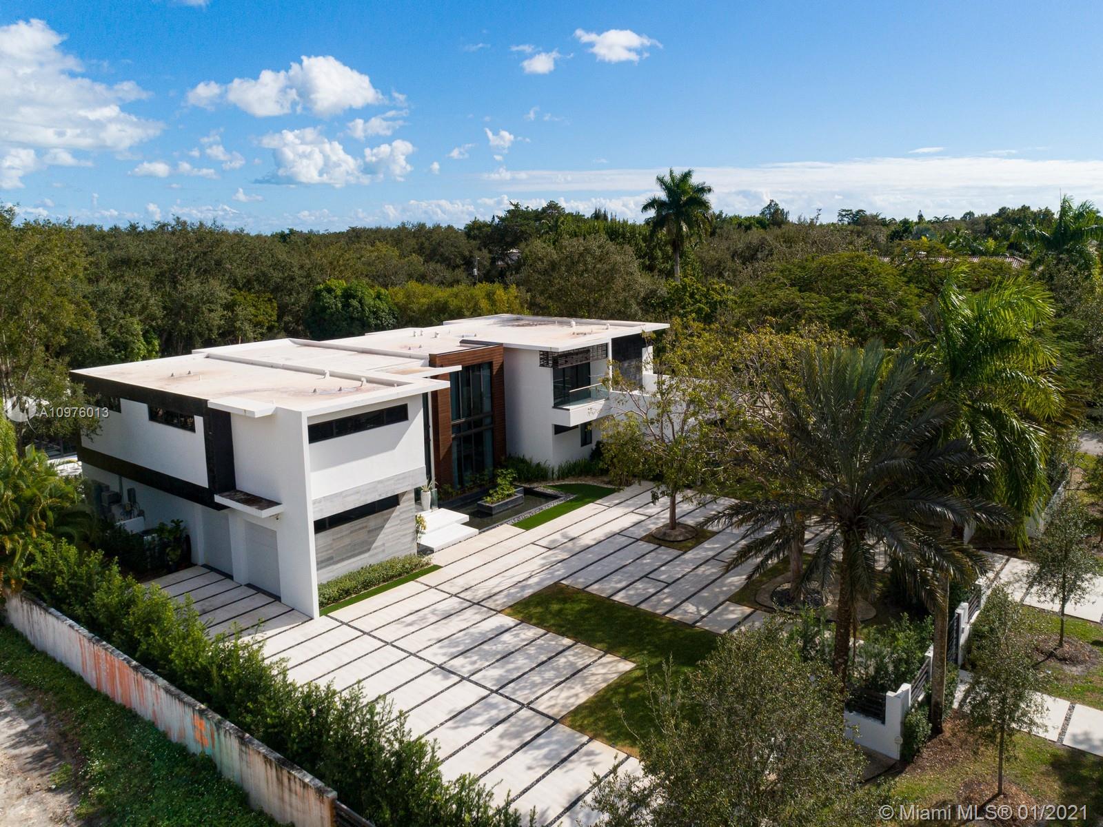Located in the prestigious, sought-after neighborhood of N. Pinecrest this NEW modern estate is a unique compound comprised of 3 structures: main house, guest house & separate gym & media/play room situated on a 1.1 Acre walled & gated corner lot. Ingenious architectural masterpiece by renowned architect Eduardo Calil was designed as a tropical oasis w/ extensive use of glass throughout, Ipe accents including pool deck, features Zen waterfall, reflecting pools, and Mega Chess. White Carrara marble flrs provide a clean modern look throughout the house. Ideal family home boasting 7 BRS in the main house, w/ separate master wing, 100 bottle glass wine cellar, elevator, outdoor “Living Room”, cabana bath, mature landscaping & outdoor showers.