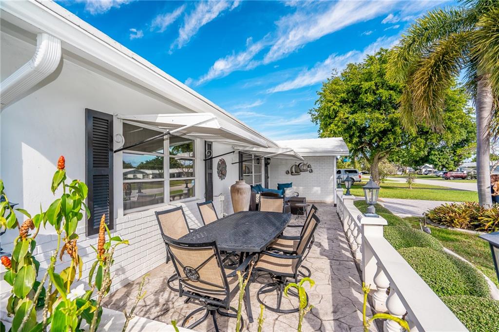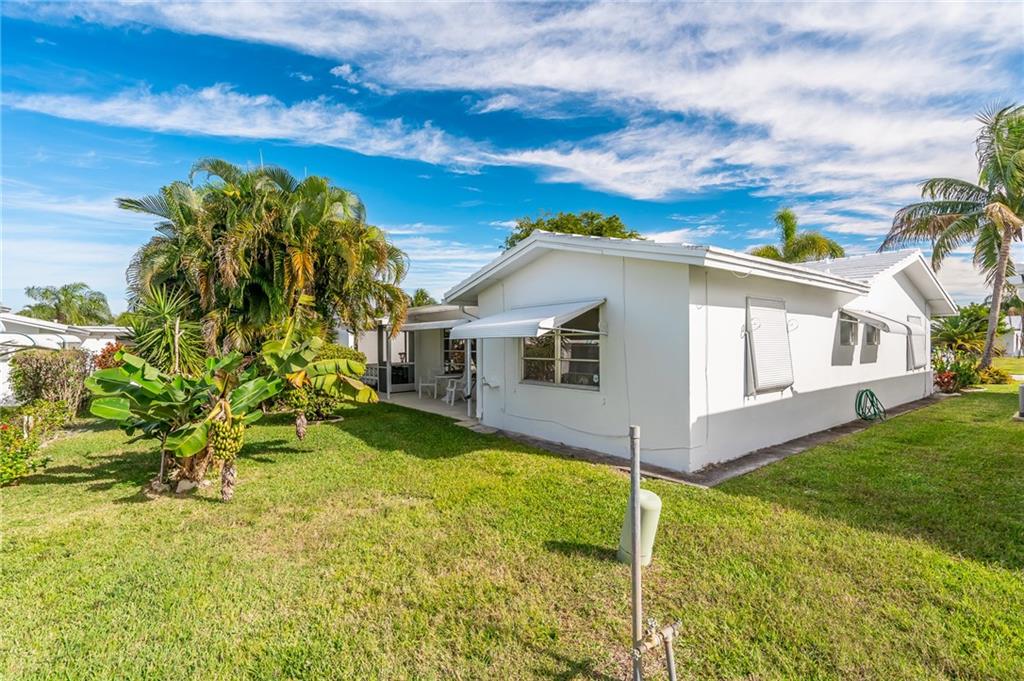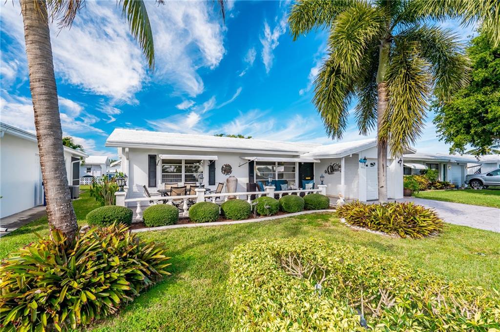 This well-maintained 2/2 home w/garage is largest model available in Leisureville. Open front porch is surrounded by beautiful landscaping, custom outdoor lighting and double stamped concrete driveway. Owners kitchen expansion features additional cabinetry, countertops , pantry and inside laundry room. Spacious living area includes dining, Florida room w/sliding glass door opening to screened-in porch & patio area. Crown molding & ceramic tile throughout. Roof 2005, new a/c condenser 6/20. Osmosis water filter system. New PVC pipes installed under house 2018. And more! 55+ Community . NO LAND LEASE 2021 Monthly association fee $232.00 Conveniently located to restaurants, shopping and beach.