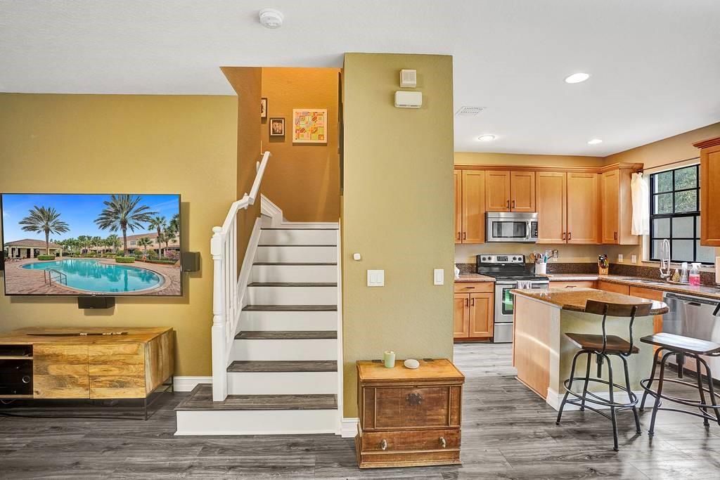 Fabulous and clean. Redwood model 3 bedroom, 2.5 bath and 1 car garage. Lowest HOA townhome. Walk/Bike to park and A rated Elementary, Middle and High Schools. Beautiful laminate floors throughout, no carpet! All Brick Construction, Impact windows and Doors. One year rental restriction. Beautiful community with resort style pool.
