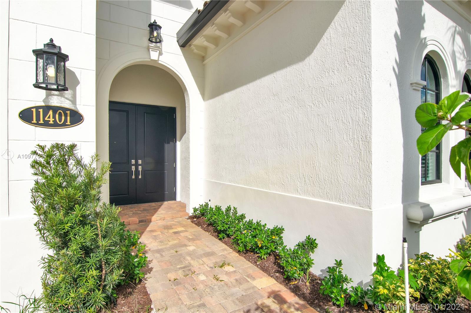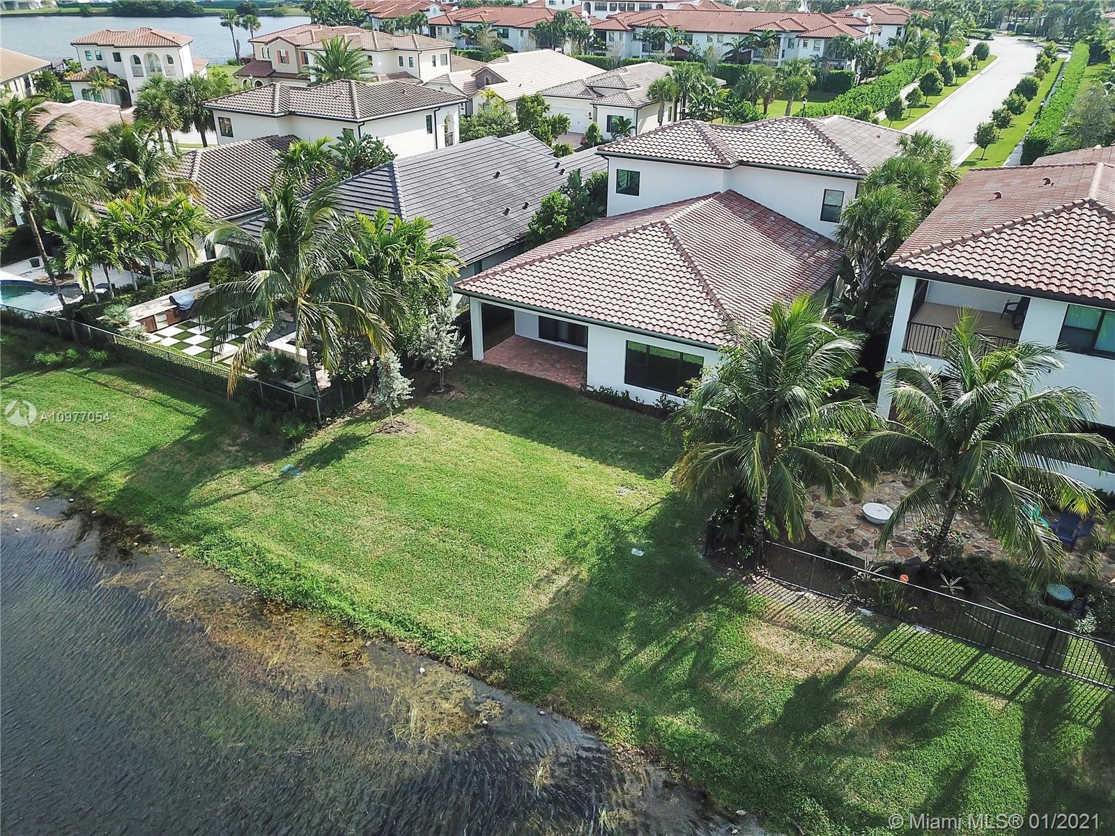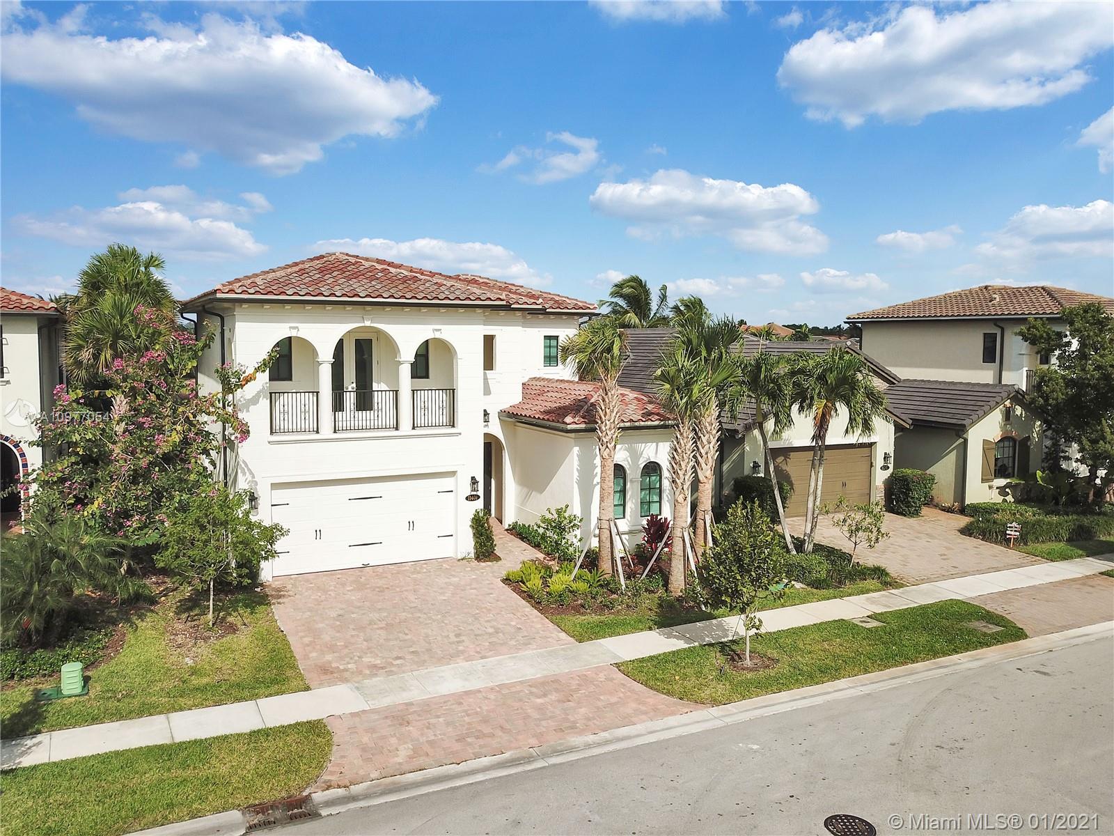 The space you are looking for. This truly beautiful, brand new Estate Series, 2-story Provence model, built in 2019, has 3610 SF of living space. 4 bedrooms each with spectacular en-suite bathrooms. The master suite, on the ground floor, has twin walk-in closets, double basins & elegant finishes. The home has an exquisitely appointed kitchen. Features a den, an office, powder room, impact doors & windows, 10' ceilings, ample storage space & ceramic tiles on ground floor. The staircase is wooden. This beautiful home gets lots of natural light. Includes a laundry room & 2 car garage. Backing onto a peaceful & calming lake, it sits in a gated community w/ 24HR security, a heated pool, gym, children's play area & club house. Common & private gardens are maintained by the HOA.