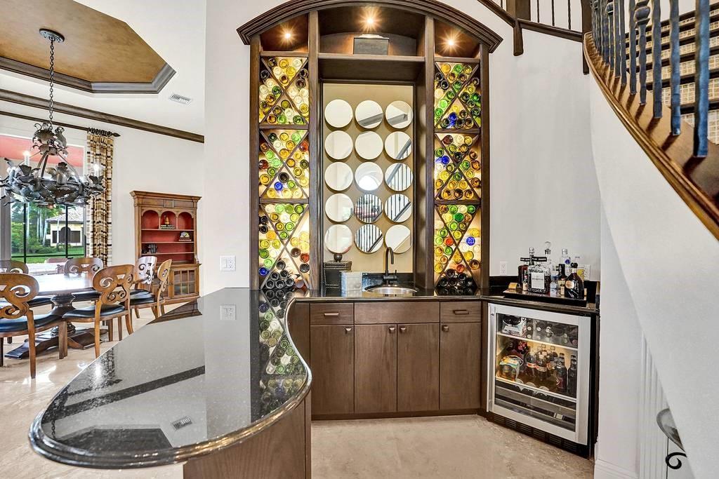 One of a kind Mrachek Custom,Dbl gated community,Dramatic entry w/ fountain leads to handcrafted contemporary 10' doors.Marble pavers front and back. Foyer and entry are sun-filled and bright.21 ft ceilings and open living.PGT Impact Windows & Doors.Custom marble work throughout. Entertainers’ bar with illuminated wine storage tucked under custom curved marble and wood staircase which leads to furnished game room with pool table, 2nd bar and state-of-the-art home theater. All secondary bedrooms are en suite. Enormous custom kitchen with high-end appliances including double subzeros, thermador ovens,2 dishwashers,pot filler and jennaire cooktop.Warm library with contemporary builtins,Sparkling oversized pool and spa. Hurricane-proof screen structure to enjoy Florida living.
