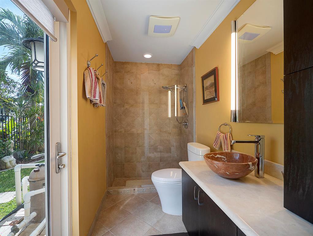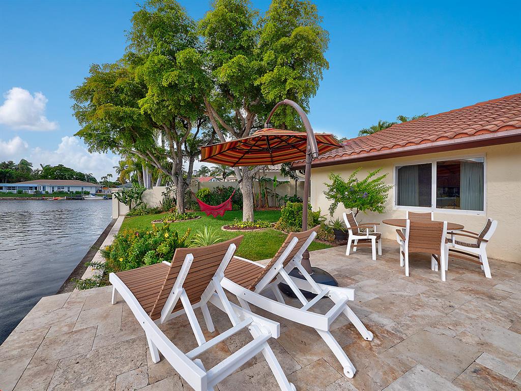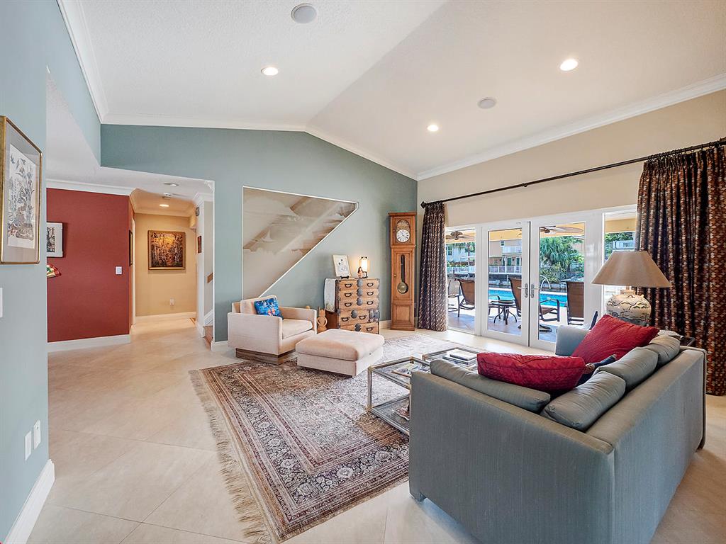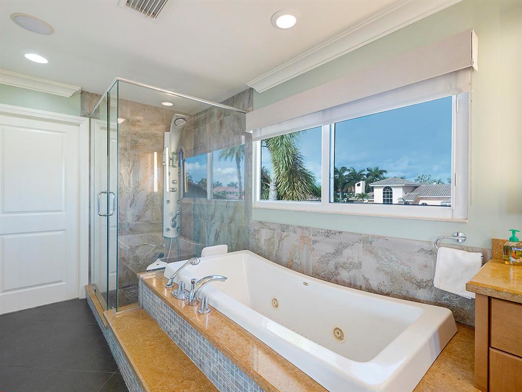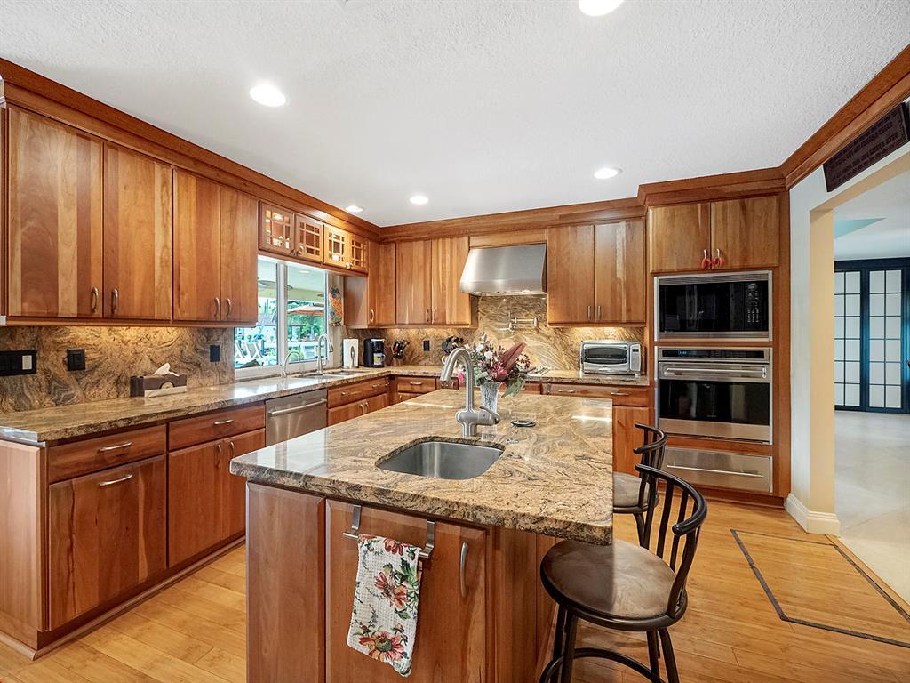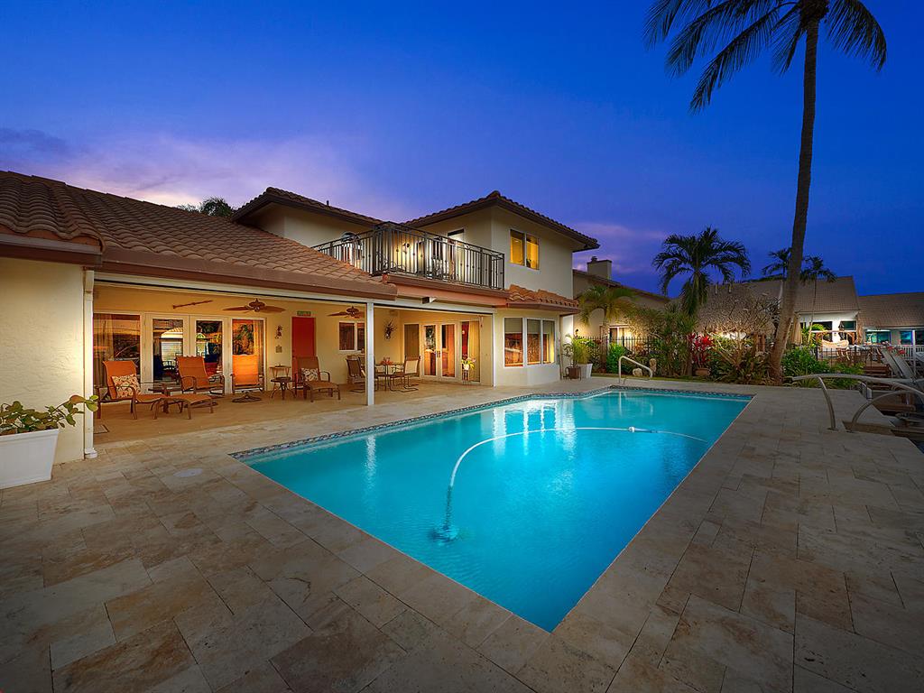 Escape to a scenic and spectacular Boca Raton waterfront home with views of breathtaking landscaping overlooking the water, all new dock & sea wall for a 45 ft boat, new heated pool with travertine decking and covered porch with electronic screening. The home's interior was completely updated in 2007 from the studs. The front foyer welcomes you to a nook viewing a garden then onto a volume high spacious living room viewing the covered porch, pool and water front. Two generous first floor bedrooms are connected by a luxurious bath with jacuzzi tub. Adjoining the living room is a formal dining room. Then you move onto the luxurious kitchen including custom cabinetry, many Wolf appliances with gas cooktop. The family room with matching cabinetry and a wine and beverage refrigerator is