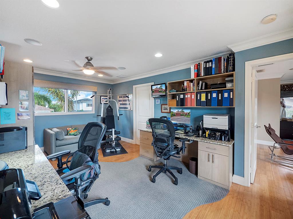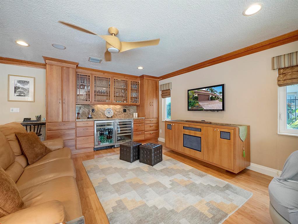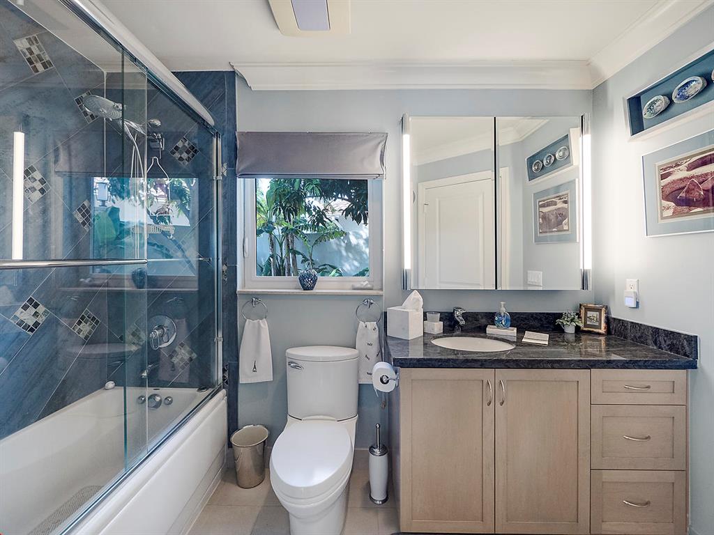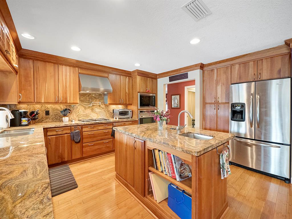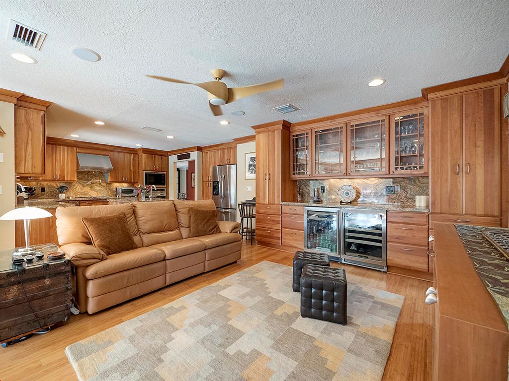 Escape to a scenic and spectacular Boca Raton waterfront home with views of breathtaking landscaping overlooking the water, all new dock & sea wall for a 45 ft boat, new heated pool with travertine decking and covered porch with electronic screening. The home's interior was completely updated in 2007 from the studs. The front foyer welcomes you to a nook viewing a garden then onto a volume high spacious living room viewing the covered porch, pool and water front. Two generous first floor bedrooms are connected by a luxurious bath with jacuzzi tub. Adjoining the living room is a formal dining room. Then you move onto the luxurious kitchen including custom cabinetry, many Wolf appliances with gas cooktop. The family room with matching cabinetry and a wine and beverage refrigerator is