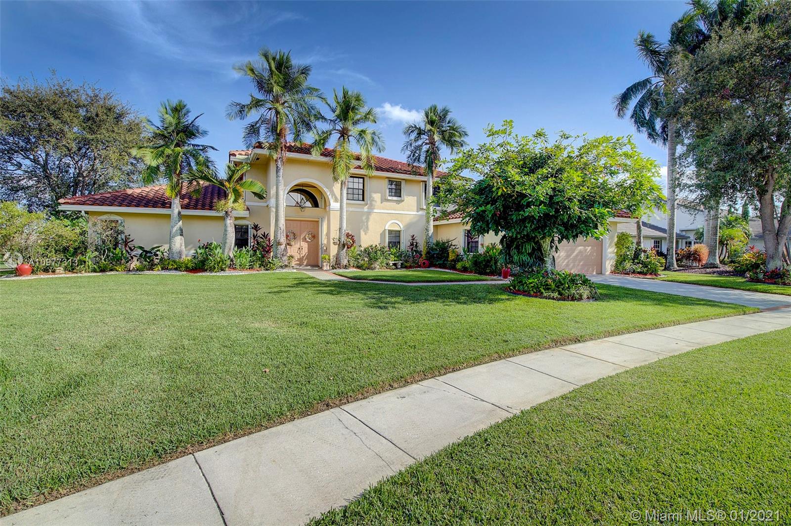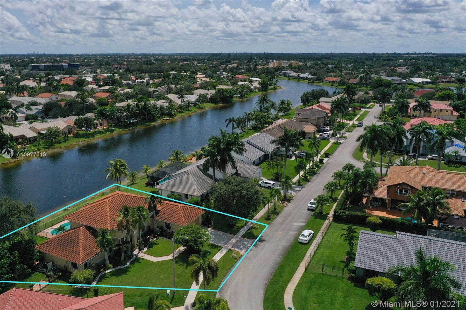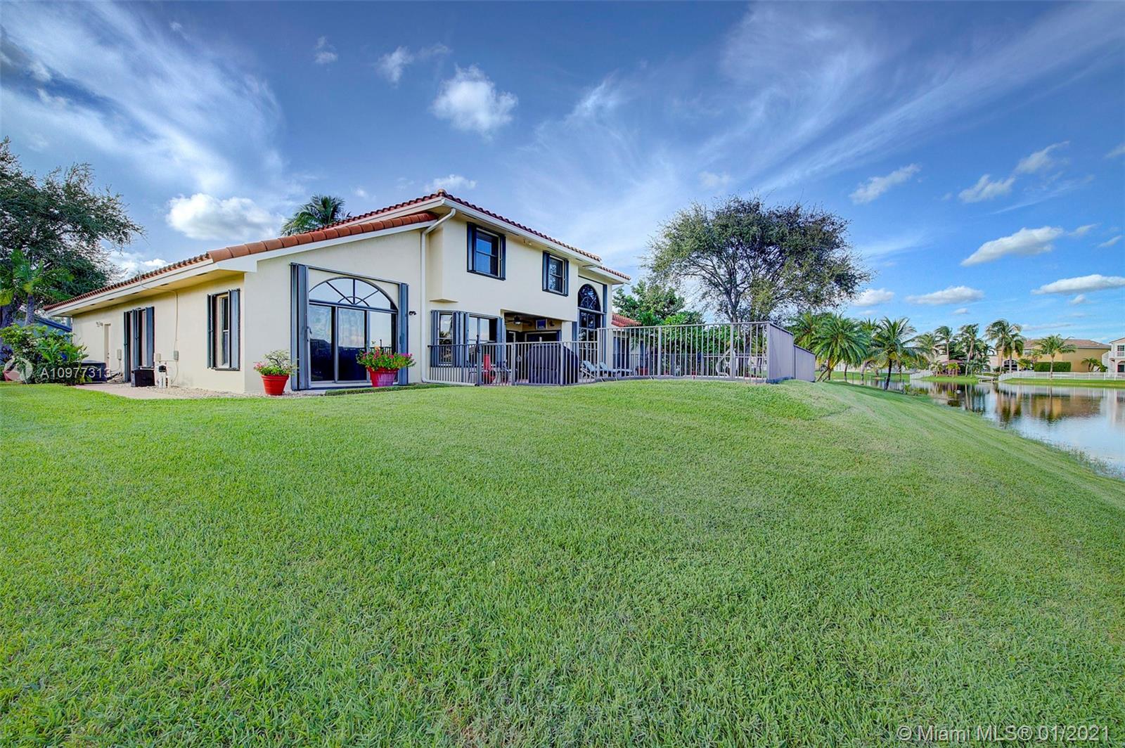 STUNNING Lakefront Pool home with 4 bedrooms 3 bathrooms and 2 car garage with extra large driveway! Located in the highly sought after Pasadena Estates of Chapel Trail and is the second largest lot in the development! This home faces west and has stunning lake views! NEW ROOF! Freshly painted exterior. Accordion hurricane protection throughout! Spacious master bedroom located on the first floor. Gorgeous remodeled kitchen with white wood cabinets, granite countertops and stainless steel appliances. Alarm system wired throughout with 6 security cameras. Amazing backyard with heated salt water pool + spa and outdoor TV! Very quiet and private neighborhood! A+ schools and close to shopping, dining and major highways!