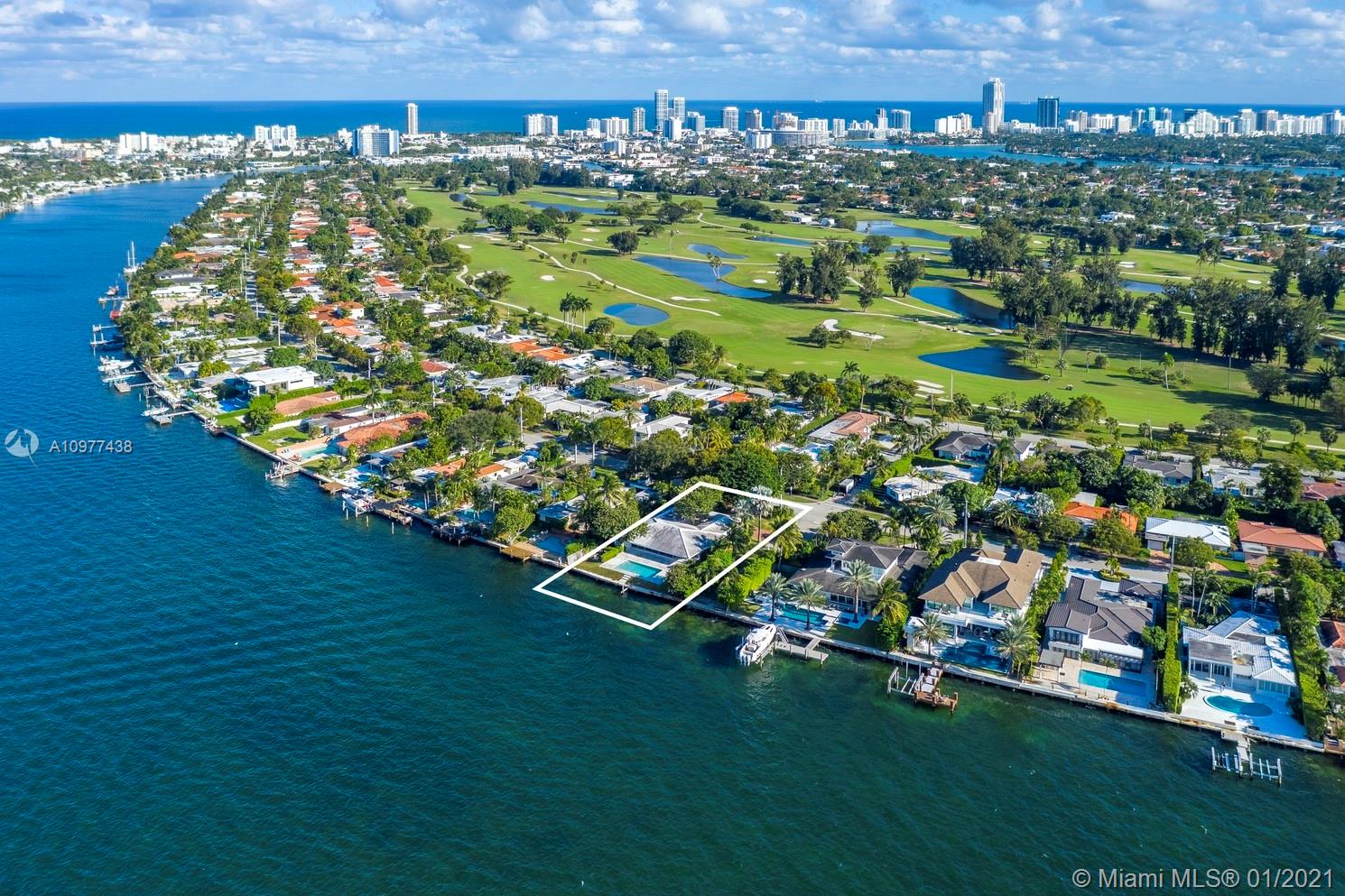 Feeling like you're floating on a cruise ship and enjoying the balmy breezes of Biscayne Bay is heavenly in this Miami Beach home on WIDE WIDE OPEN BAY. The daylight and sunset views seem like you are floating on water, as the home is situation on a high elevation. This 4 BDR/ 4 BATHS Features an open kitchen and open living areas, pool, 2 car carports & tons of storage space. Featured in National Magazines, was built by the artist and cookbook doyenne Maida Heater It stands apart from others. Situated on a corner, it is on an oversized 14, 423 SF lot. Adjoining the property there is 12,533 SF waterfront lot available for sale ,Total approx 27,000 SF of land. Located in guarded island of Normandy Shores, golf & tennis so close.