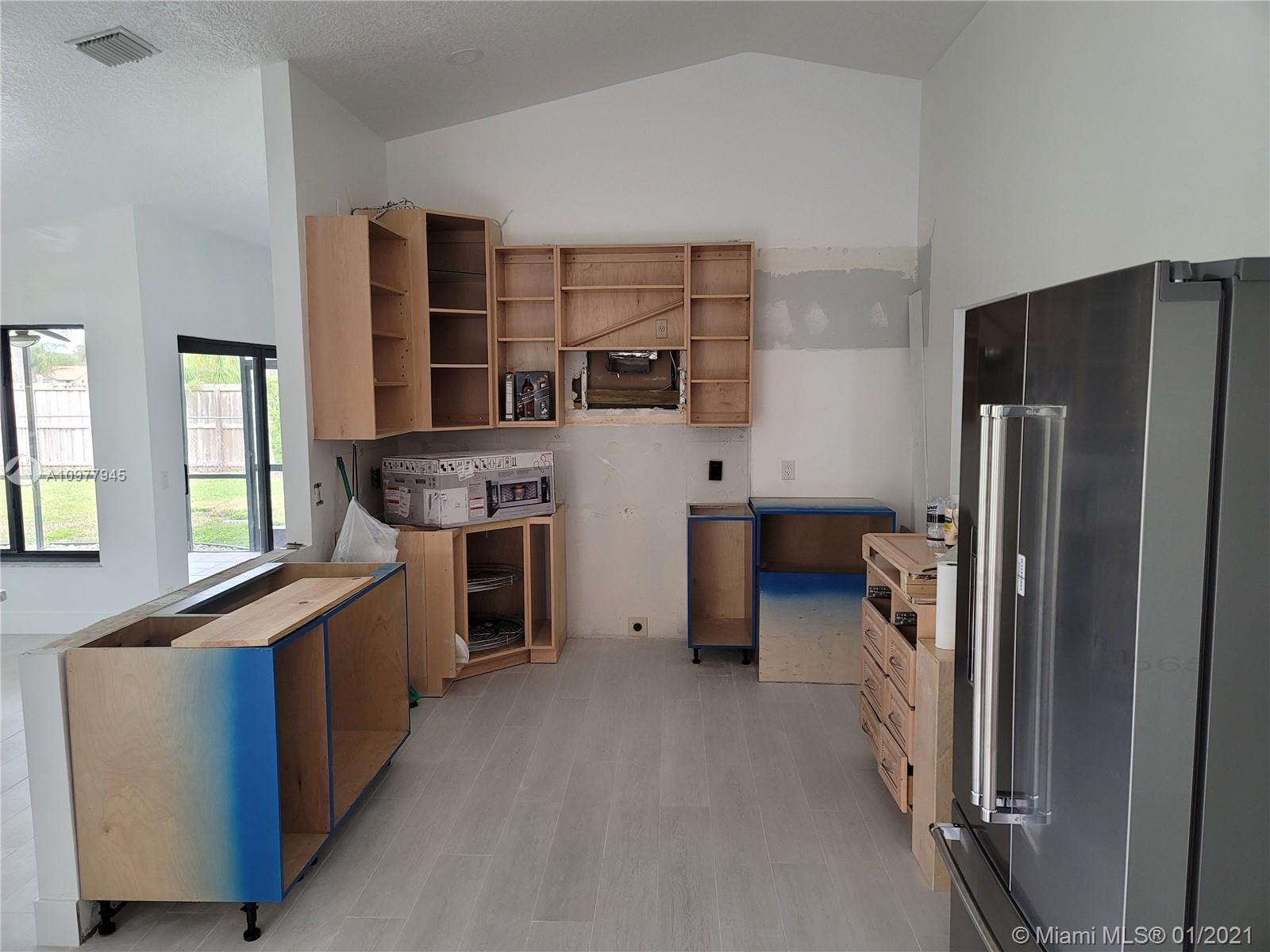 Wonderful 3 bedroom 2 bath home in a great Davie neighborhood with a backyard water view and room for a pool. Excellent school district on a quiet dead end residential street. Very spacious with an open floor plan and high ceilings. Home has a living room, dining area, and a den or office area. Close drive to stores and highways. Updated floors, baths, windows and sliding door are also impact resistant. Kitchen needs to be finished with cabinets and counter tops, etc. Metal roof installed in 2007. Sellers have purchased new appliances still in the box. HVAC system in 2017.