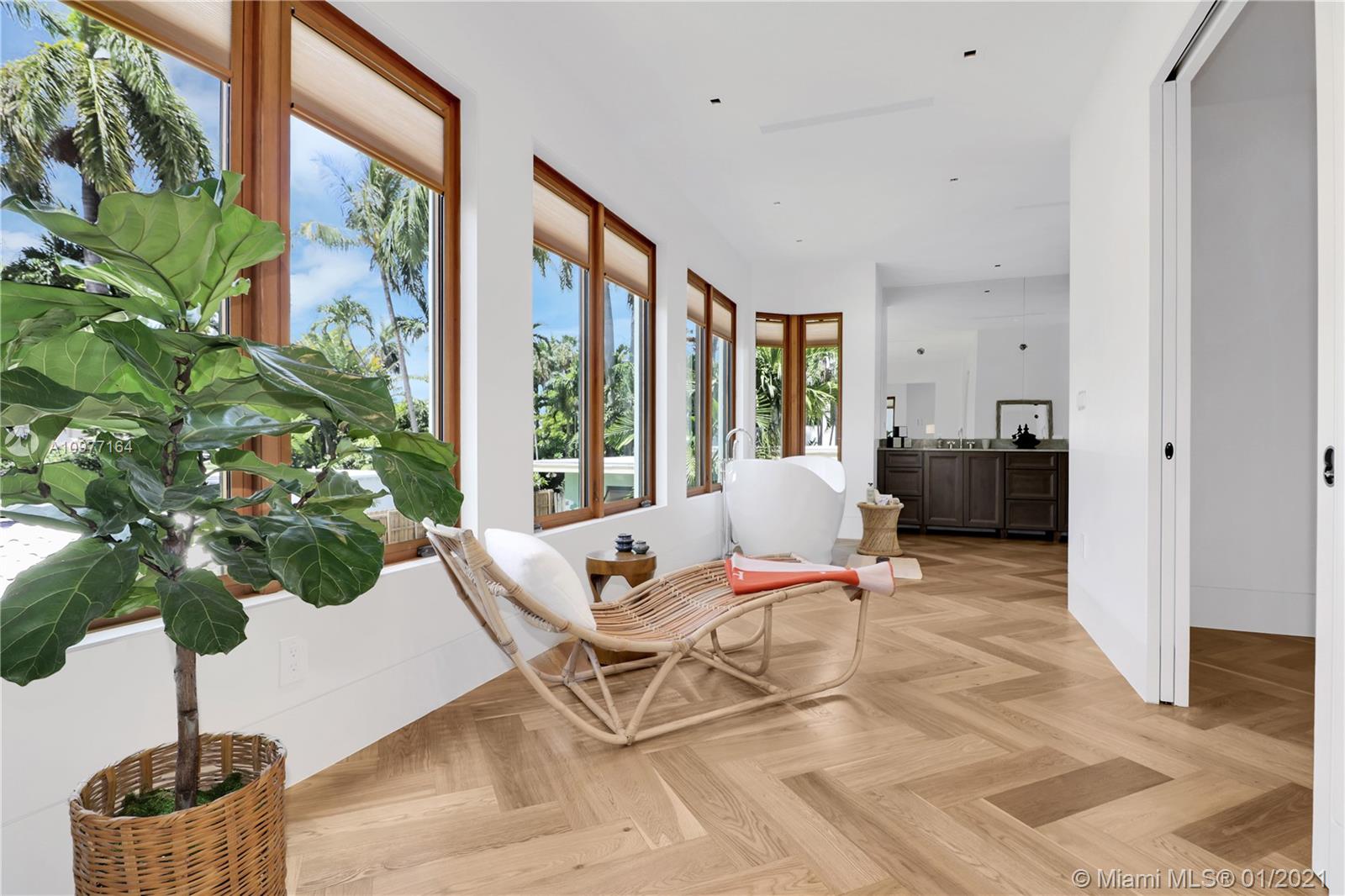 Gorgeous, completely renovated 3,153SF main home plus 497SF guest home. This 4BR/4.5BA home impresses from entry through the mahogany, hand-carved front door. Lg rooms and expansive spaces feature imported white oak floors. The LR has soaring, 25’ ceilings. Kitchen features 48” Viking gas range, Italkraft cabinets & built-in SubZero appliances. Thoughtful details include custom doors, trim & ironwork. Mstr bath has Jacuzzi tub & all baths have wall-mounted, electric Toto toilets.Ideally located on the Venetian Islands, closest to Sunset Harbour’s shops, restaurants, gyms, fresh market and marina with spectacular views of the Miami skyline & Biscayne Bay. Easy access to South Beach and Downtown Miami.